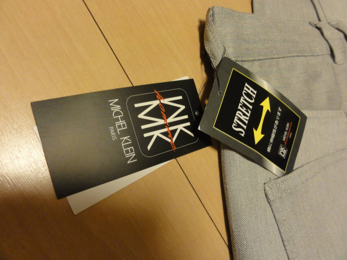 高級人気ブランド MK MICHEL KLEIN(ミシェルクラン・イトキン取扱い) のグレー系地・高級スリムテーパード系ストレッチパンツタイプ未使用品タグ付きのお洒落でかっこいいお品です。