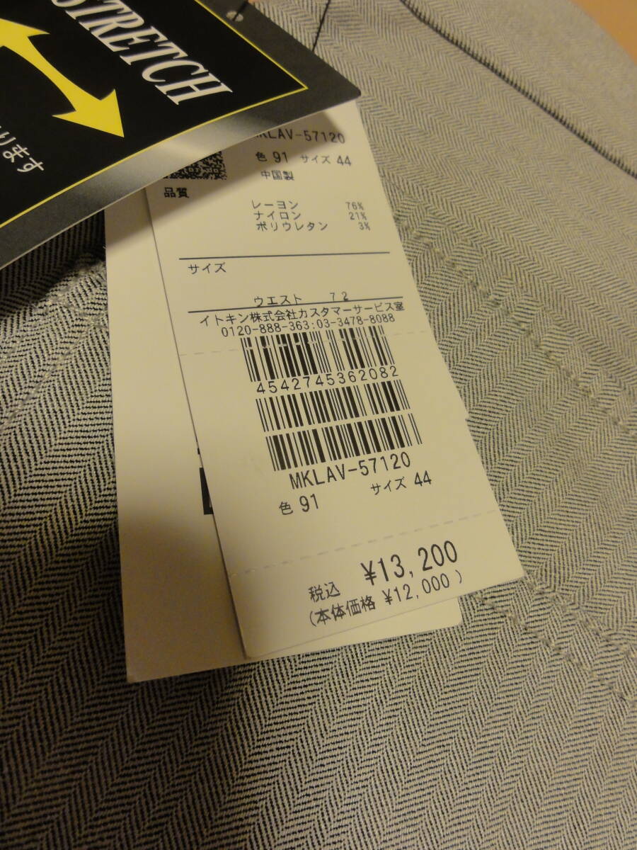 格安税込13200円未使用タグ付き・MK MICHEL KLEIN(ミシェルクラン・イトキン取扱い)・グレー系地・高級スリムテーパード系ストレッチパンツ 44 W74cm位になります。