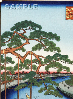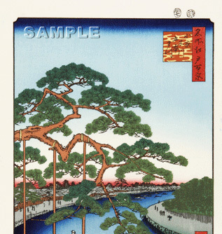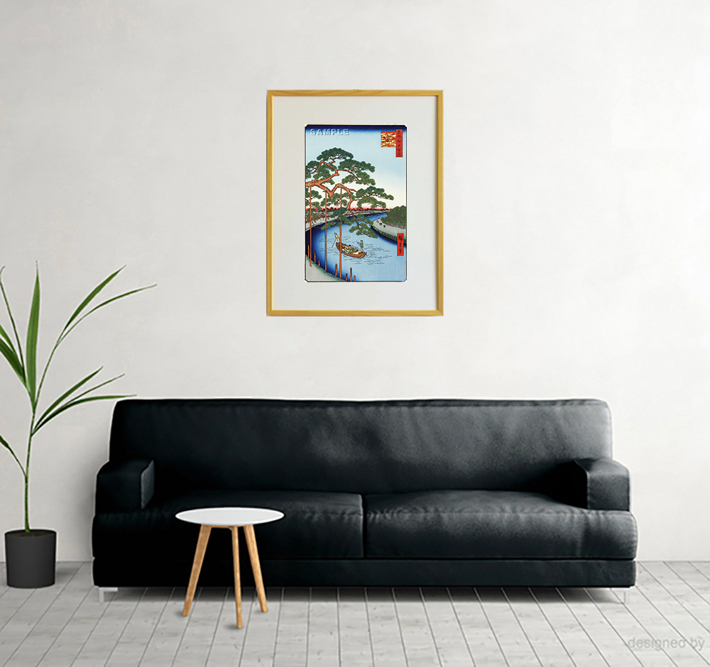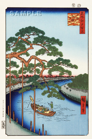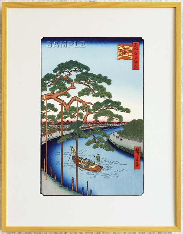 真作保証 東京都伝統工芸品 額装  歌川広重  木版画  #097 小奈木川五本まつ  初版1856-58年頃    広重の世界を唸らせた名構図!