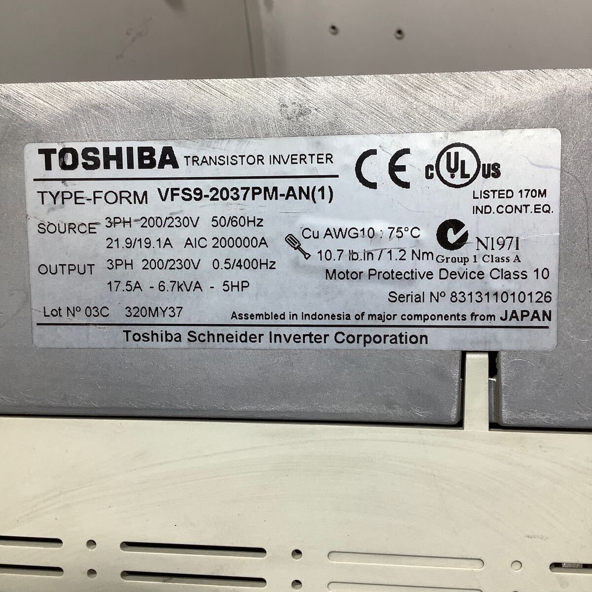 商品]東芝 インバーター 3、7kwVFS9-2037PM -AN 中古品現状渡し品です。一般通電まで済みです。
