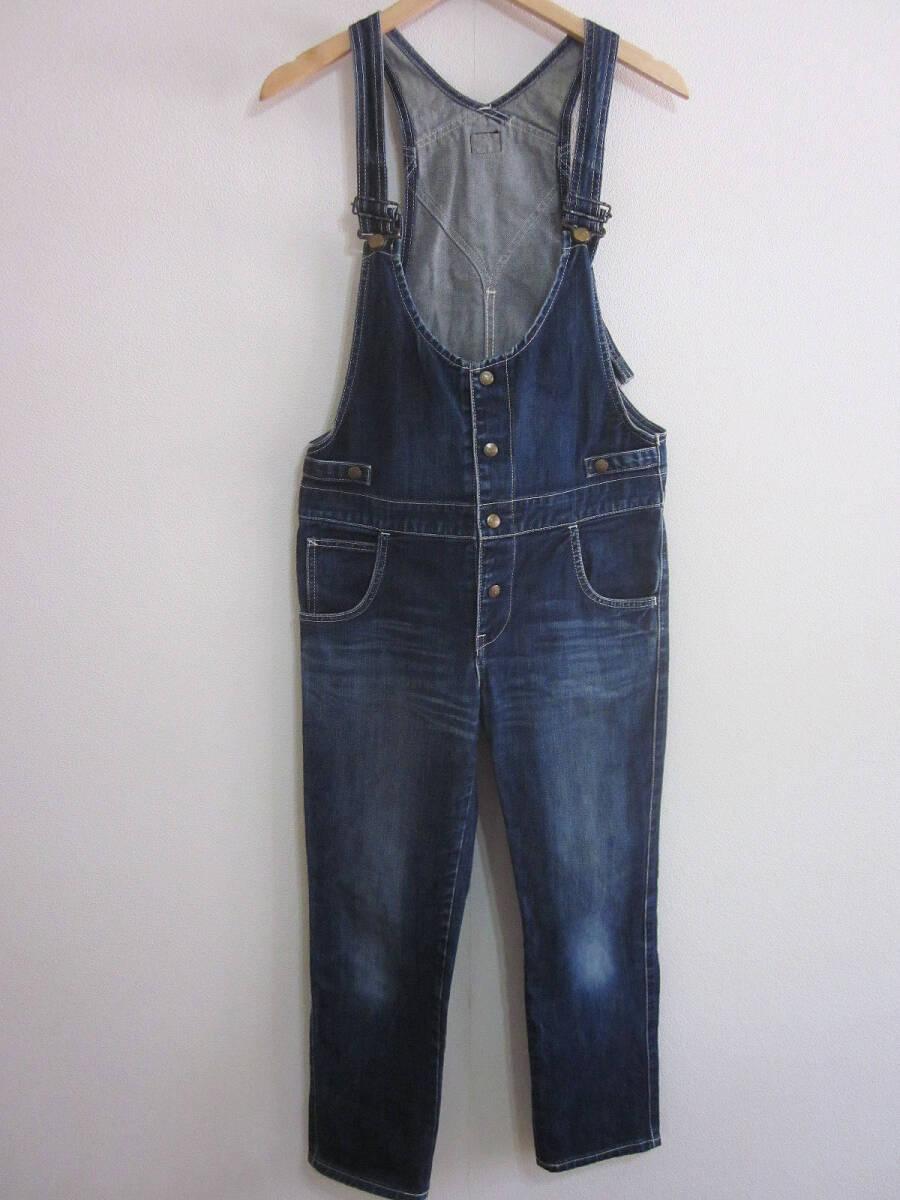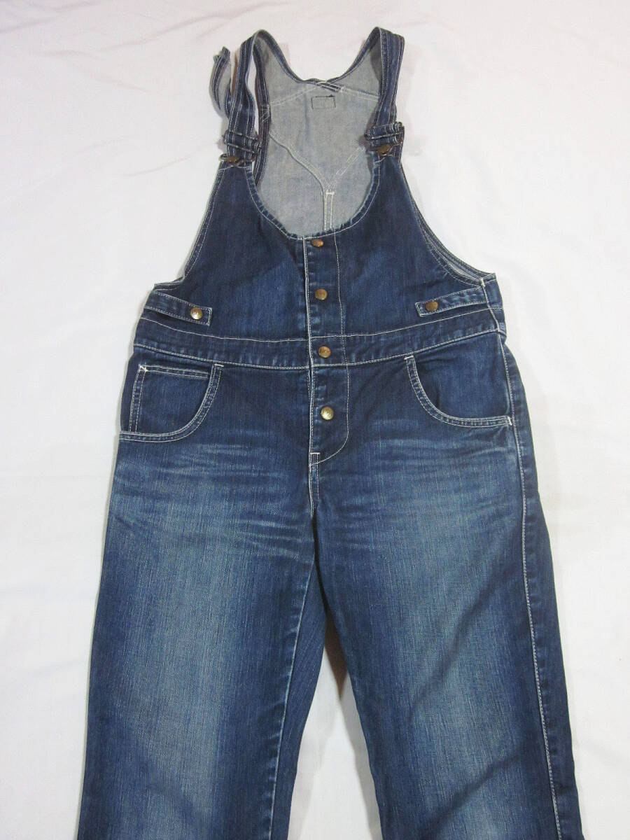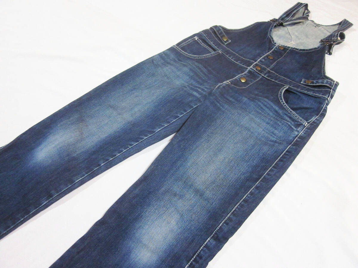 送料無料!! 濃紺 Lee リー LL1254 サロペット オーバーオール 加工 デニム ジーンズ インディゴ M 総丈約130CM ワーク 古着