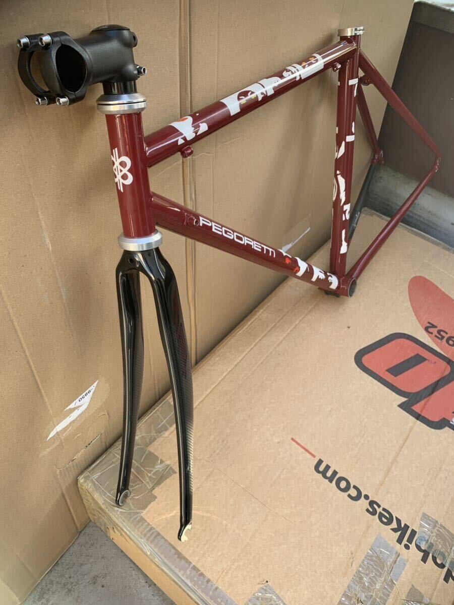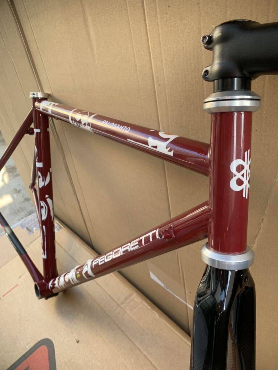 現在の綺麗な工房ではなく、小さな町でペゴレッティが1人が作っていた頃のハンドメイドイタリアンスチールフレームをお探しの方いかがでしょうか?