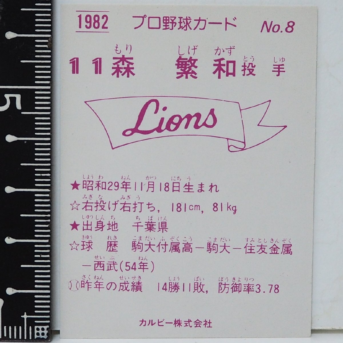 82年 カルビー プロ野球カード No.8【森 繁和 投手 西武ライオンズ】昭和57年 1982年 Calbee おまけ 食玩 BASEBALL【中古】送料込