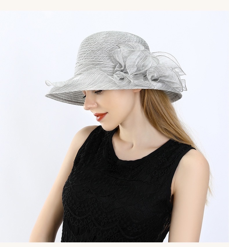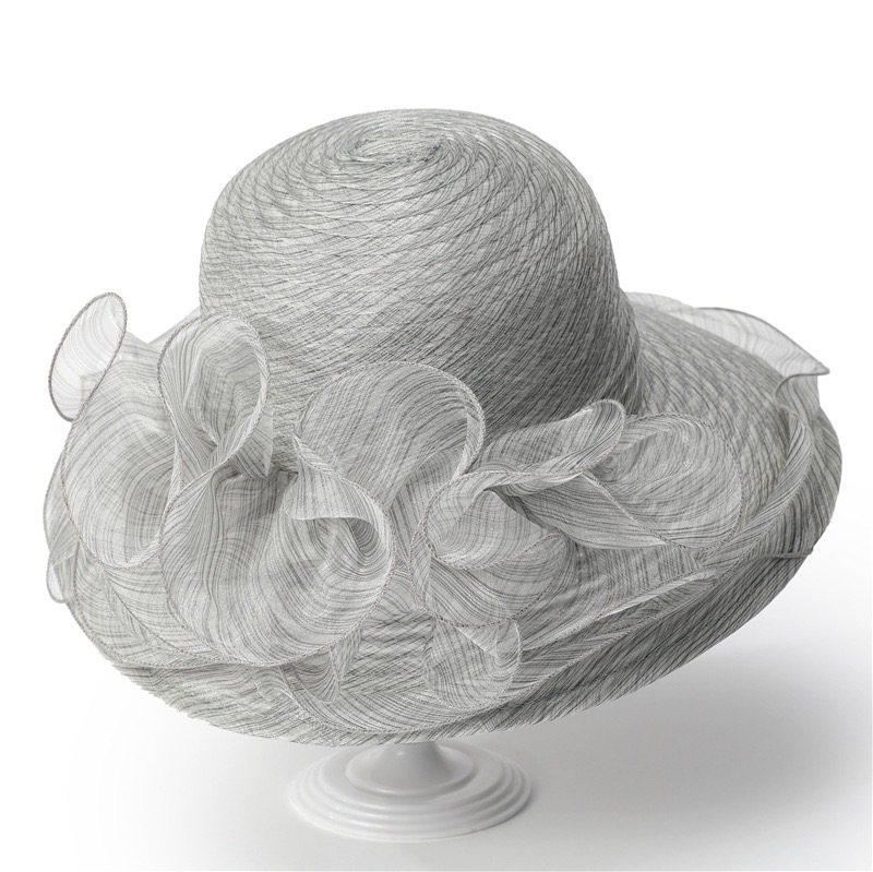 【オーガンジー】ハット/大きなお花★灰/ライトグレー★薄手/帽子