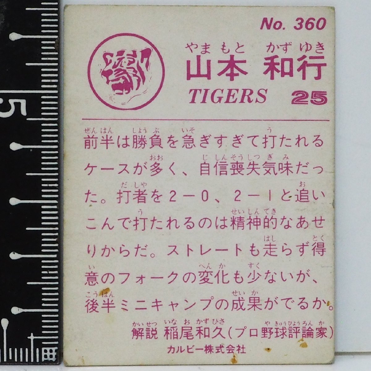83年 カルビー プロ野球カード No.360【山本 和行 阪神タイガース】昭和58年 1983年 当時物 Calbee おまけ 食玩 BASEBALL【中古】送料込