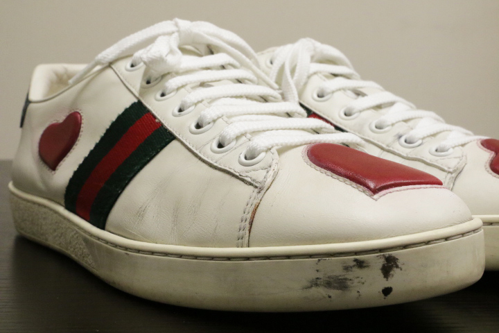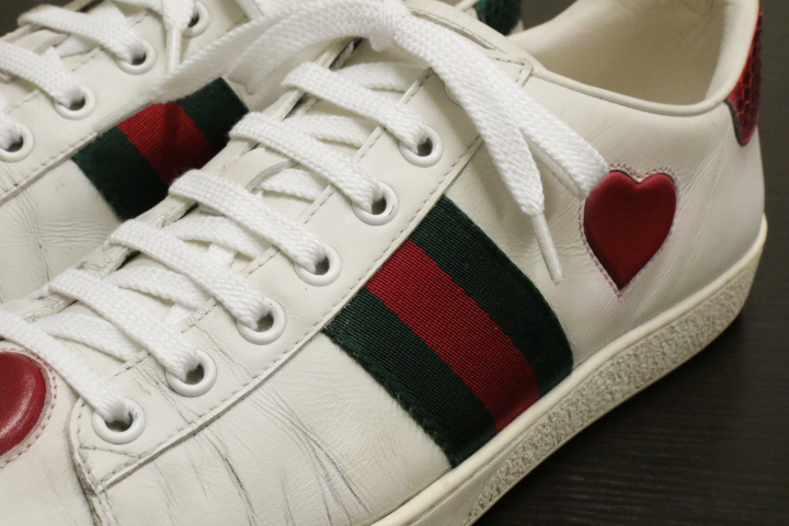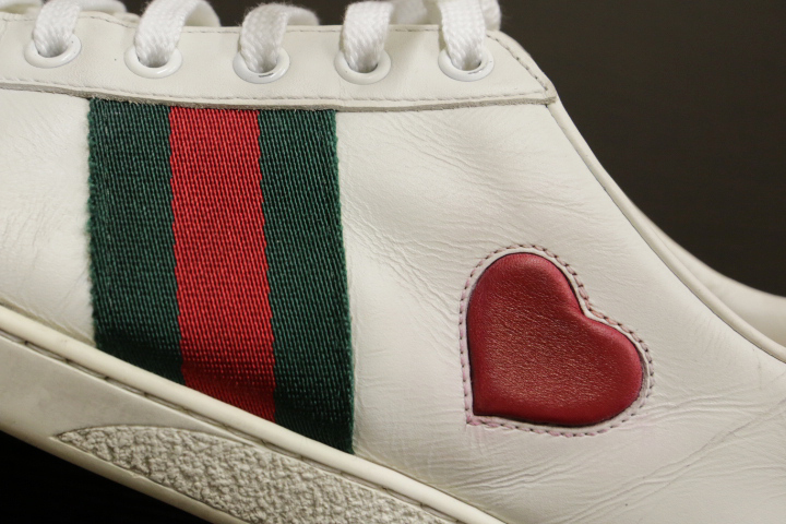 エンブロイダリーとかかとにはGUCCIのロゴ入りで