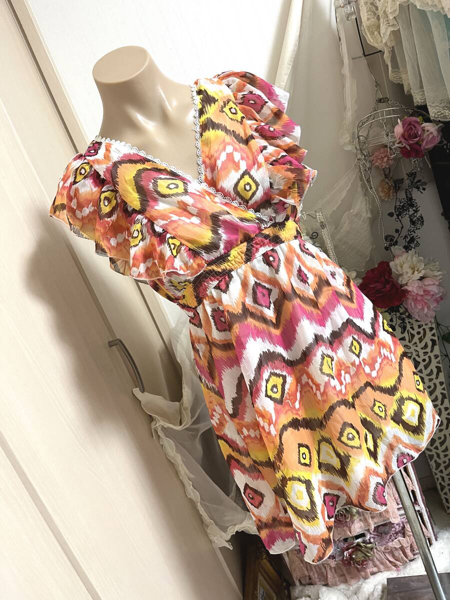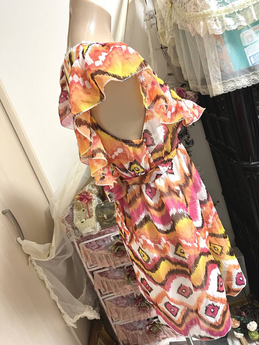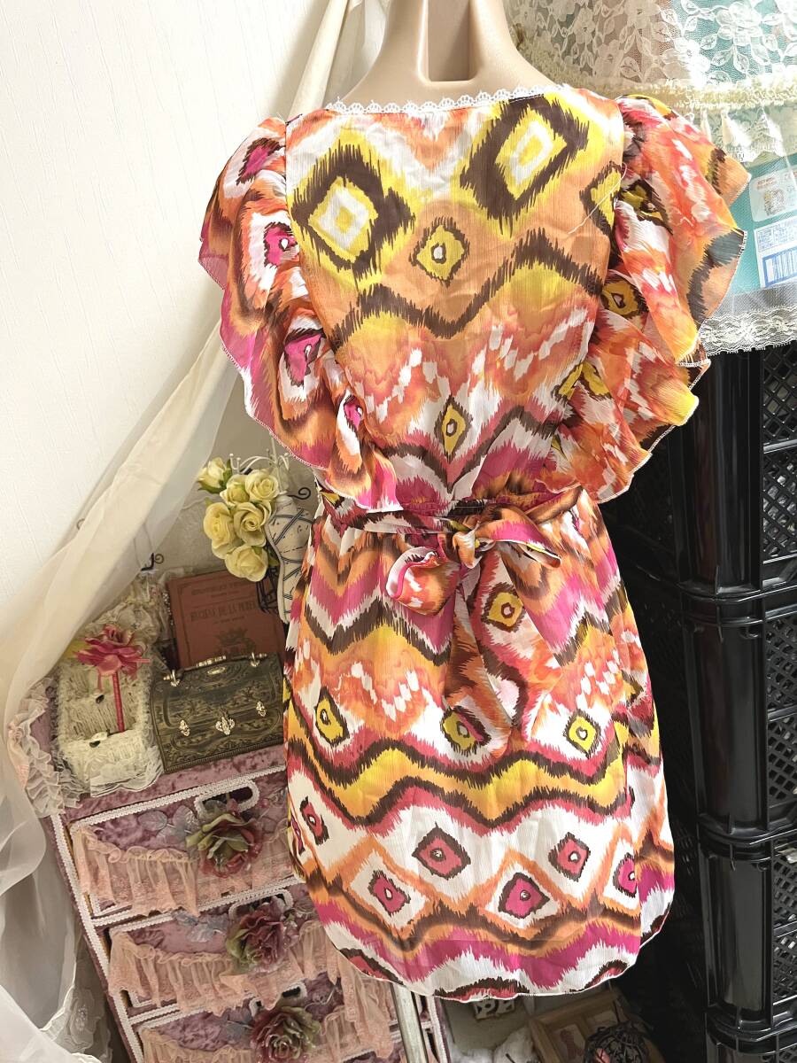 レディースFree/M程度:rose bowl99◆ウエストゴム*フリフリ腕周り*ワンピース:MIX