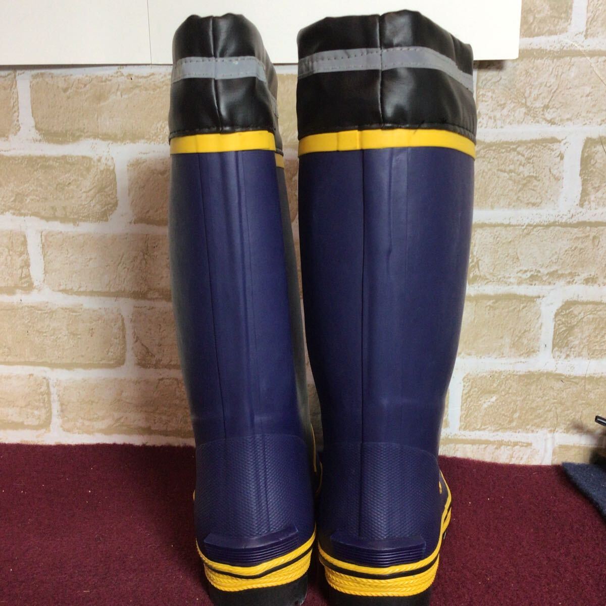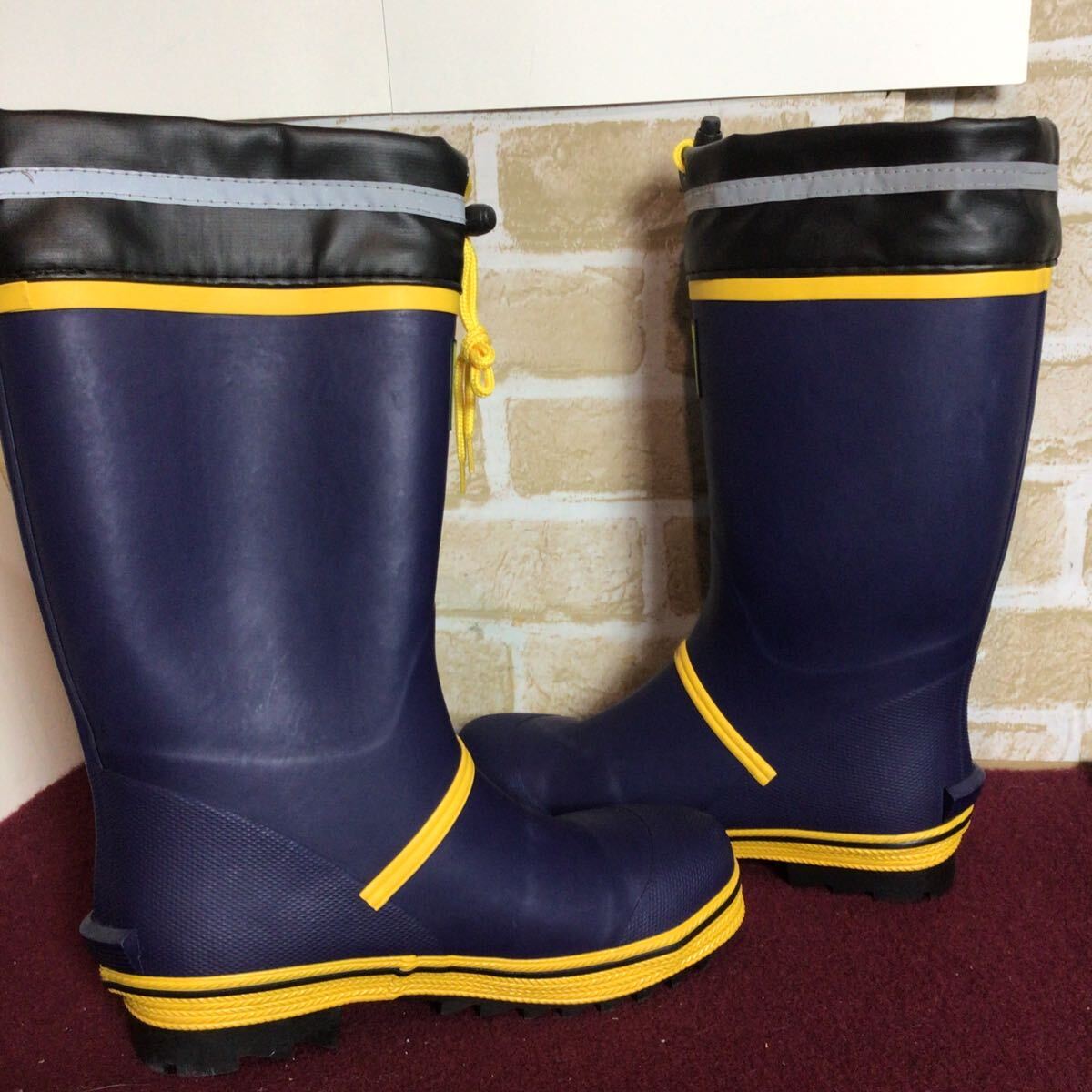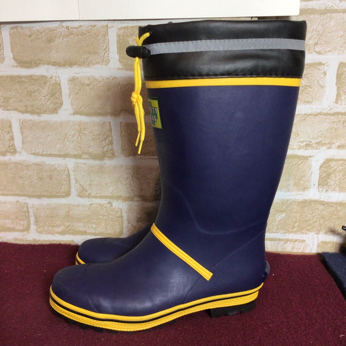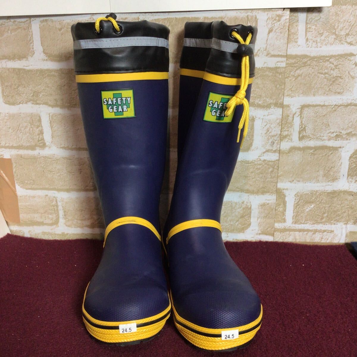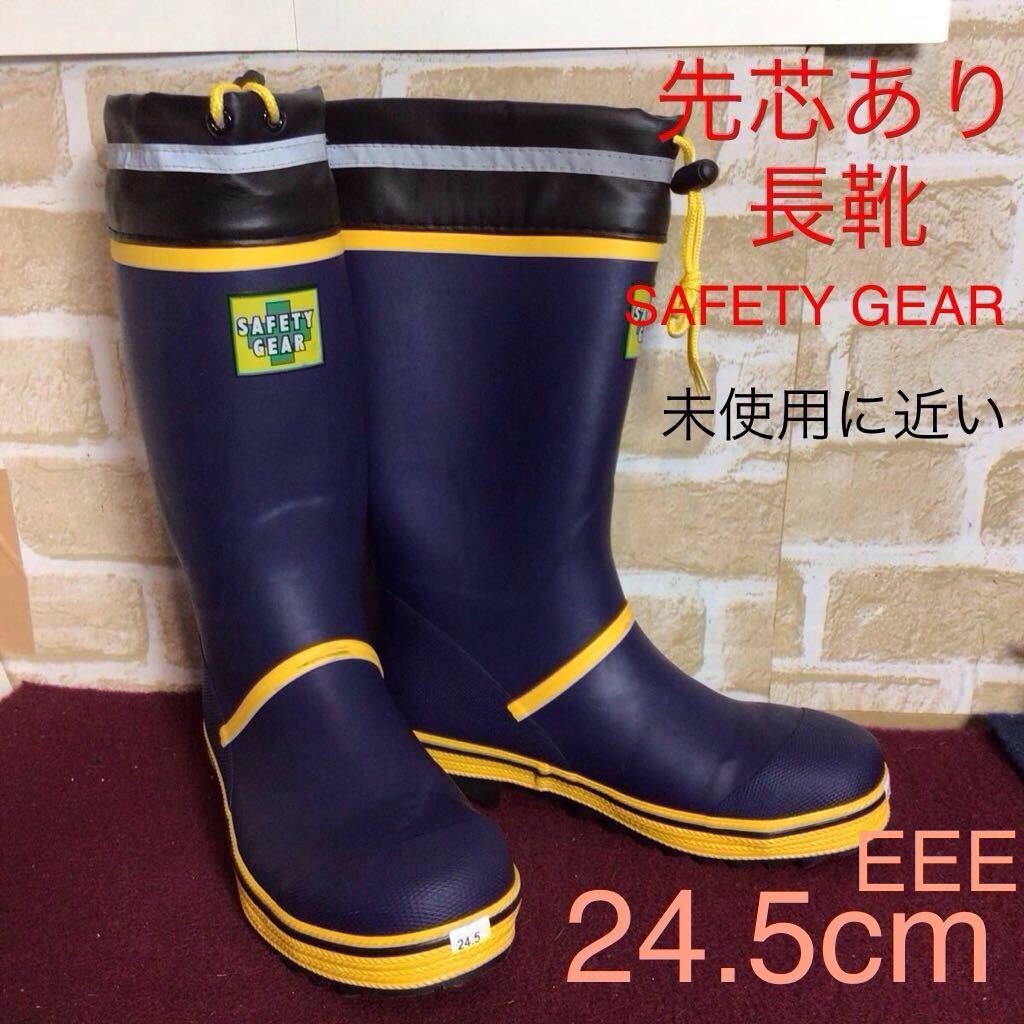【売り切り!送料無料!】A-367 SAFETY GEAR!先芯つき安全長靴!24.5cm!紺色!黄色!安全長靴!作業靴!仕事用!DIY!未使用に近い