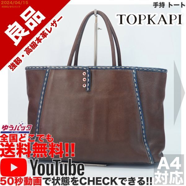 送料無料 即決 YouTube動画アリ 定価18000円 良品 トプカピ TOPKAPI 手持 トート レザー バッグ