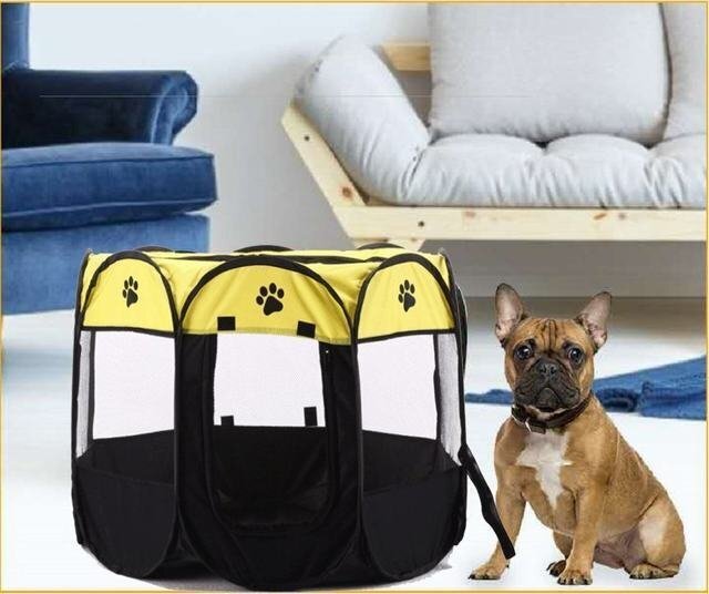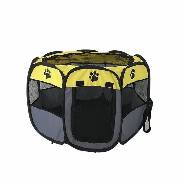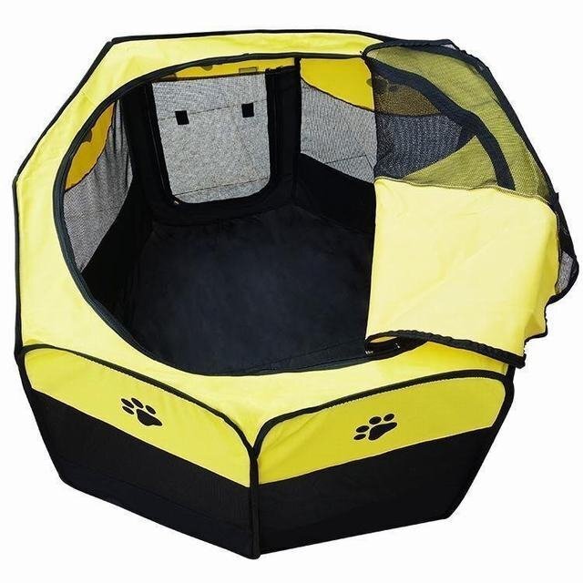 ペット用 犬 猫 ケージ 八角形 メッシュ ゲージ 柵  折りたたみサークル ポータブル 室内 中小型 アウトドア 黄色