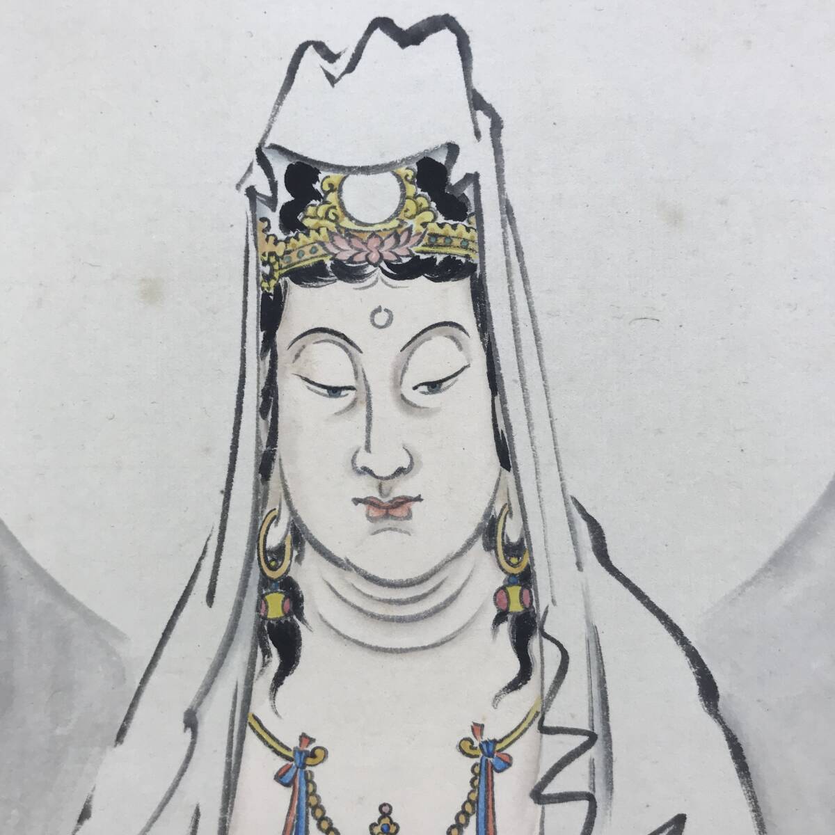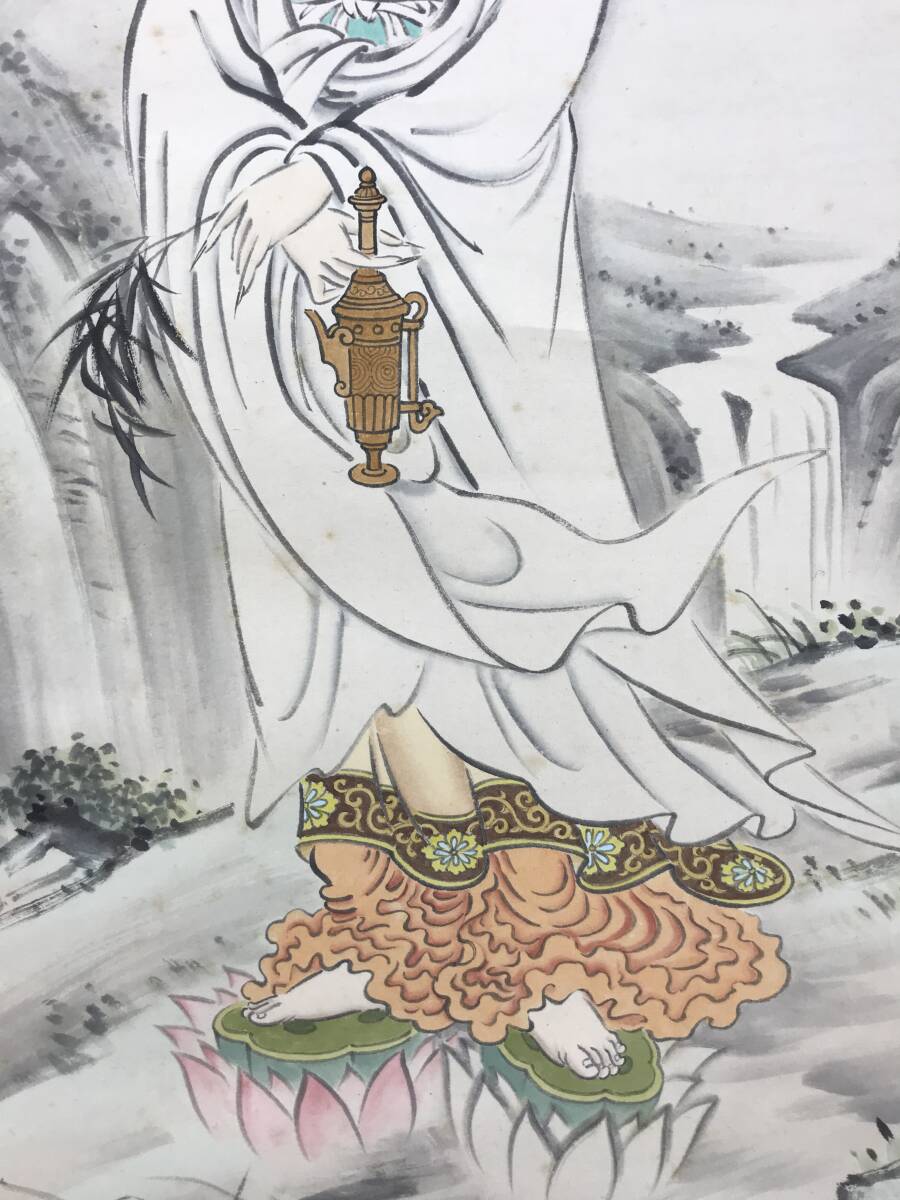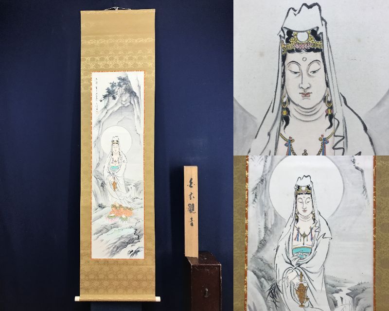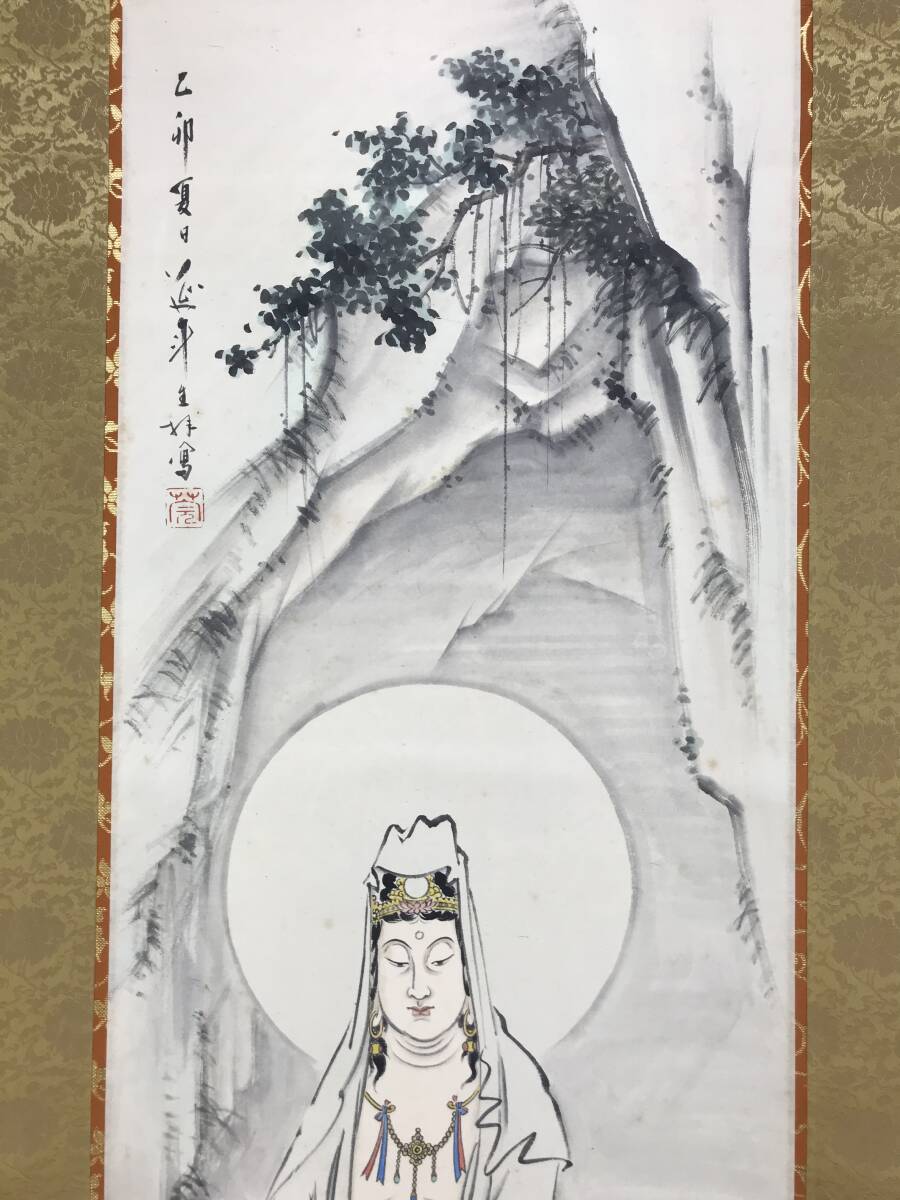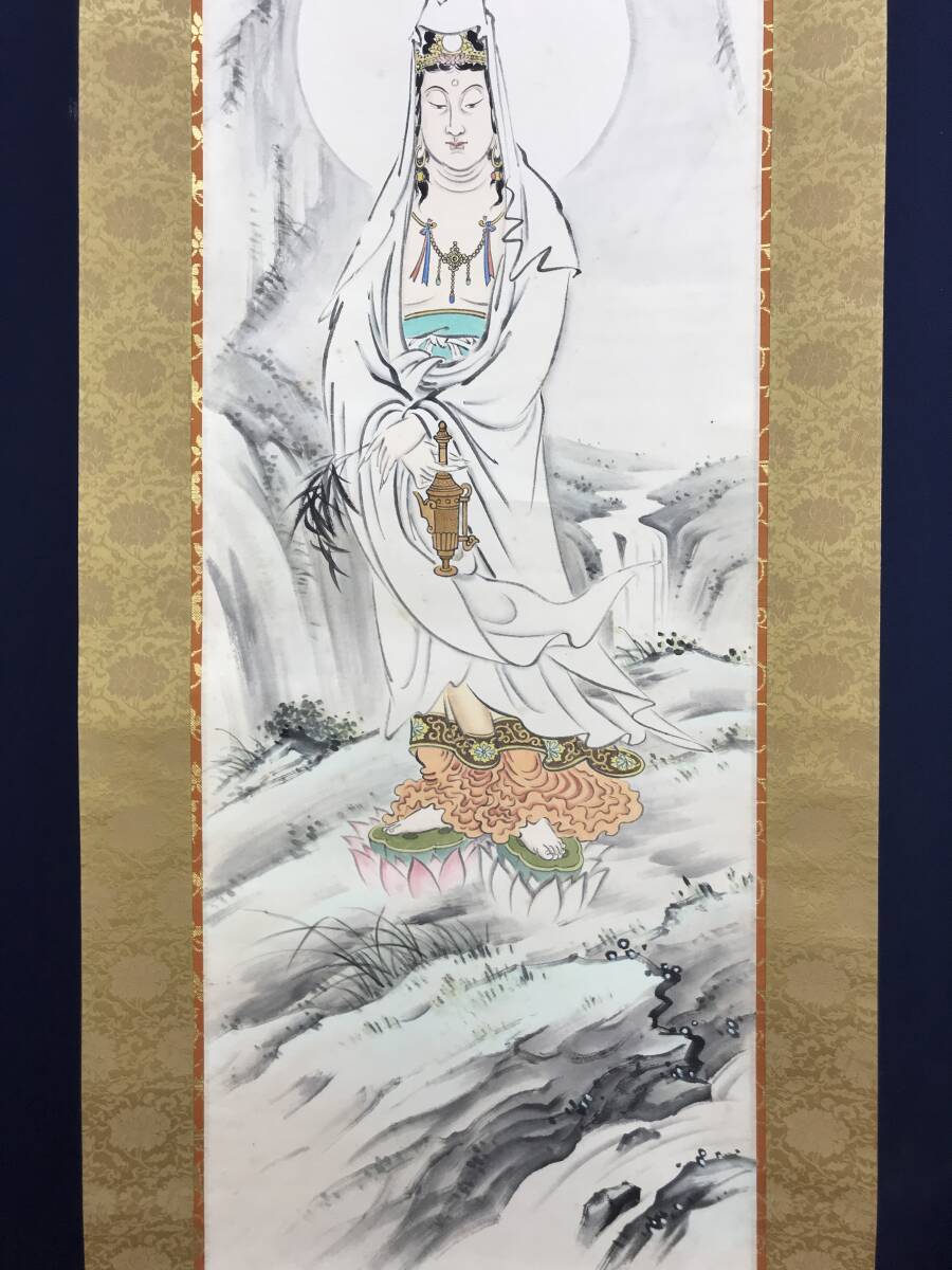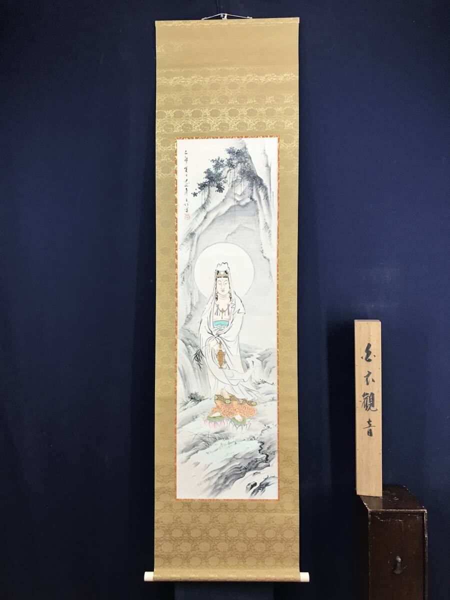 真作/藤井延年/白衣観音図/観音様/仏掛軸/掛軸☆宝船☆AF-650