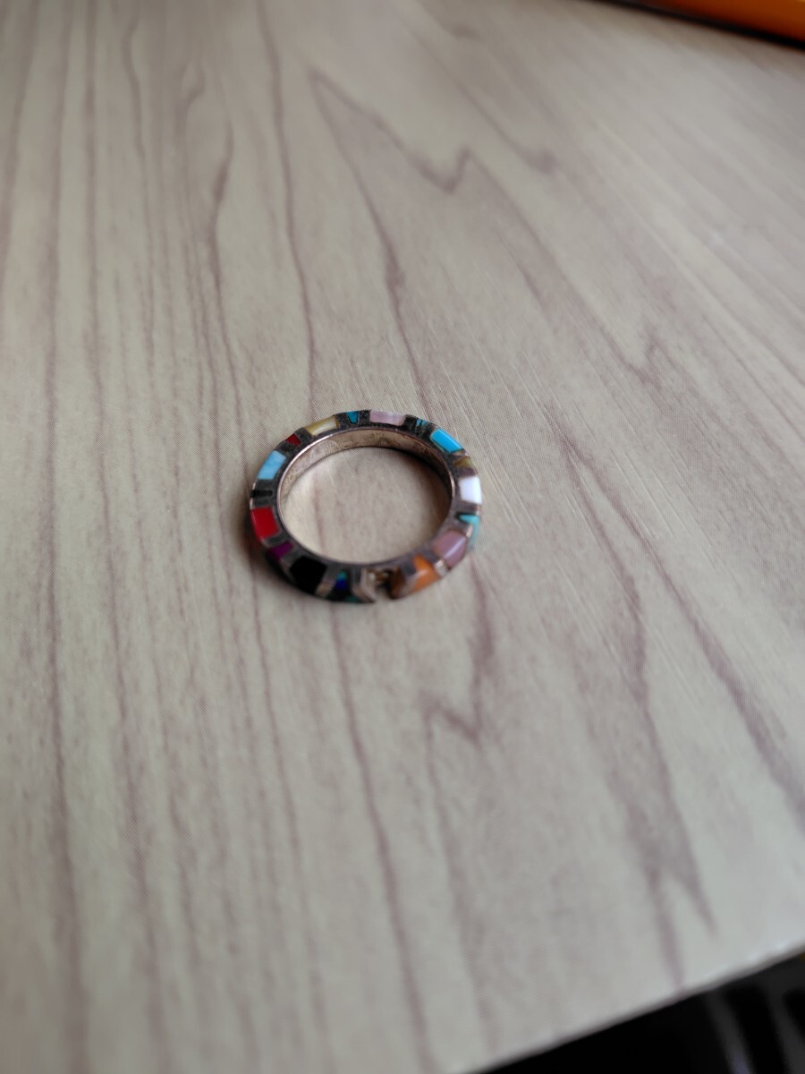 写真のとおり、オレンジの石の隣が石が外れてありません。ご了承ください。
