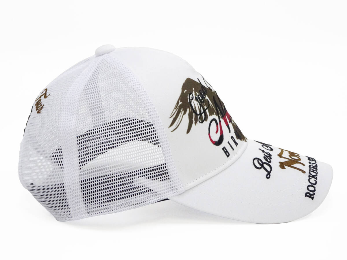 深さはやや深めで、ツバはカーブされた形態のメッシュキャップです。