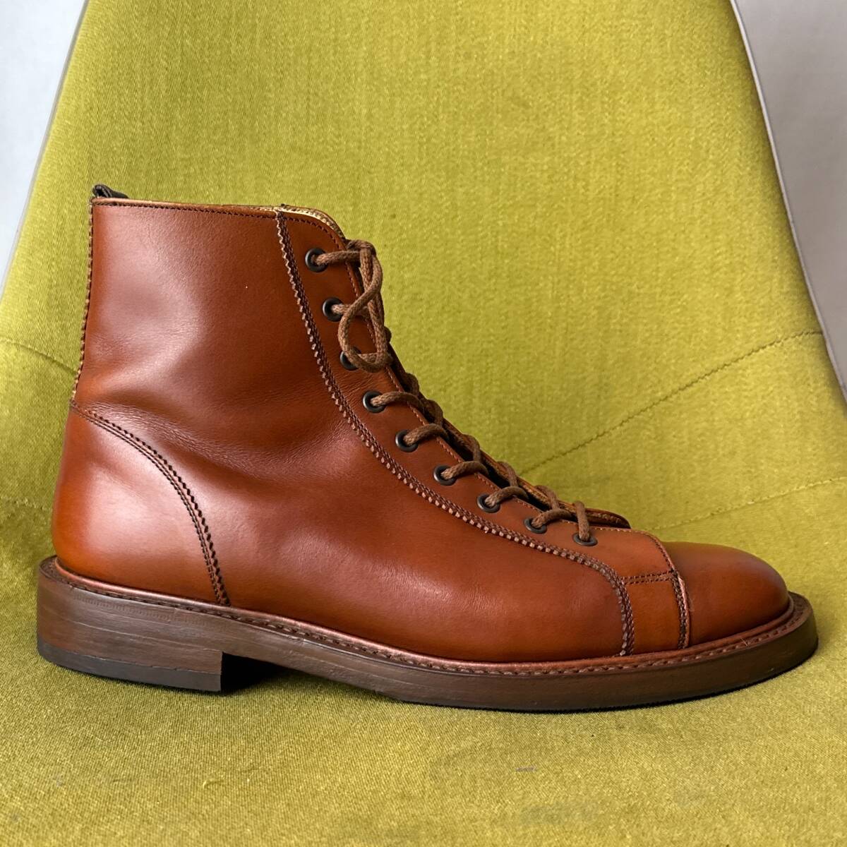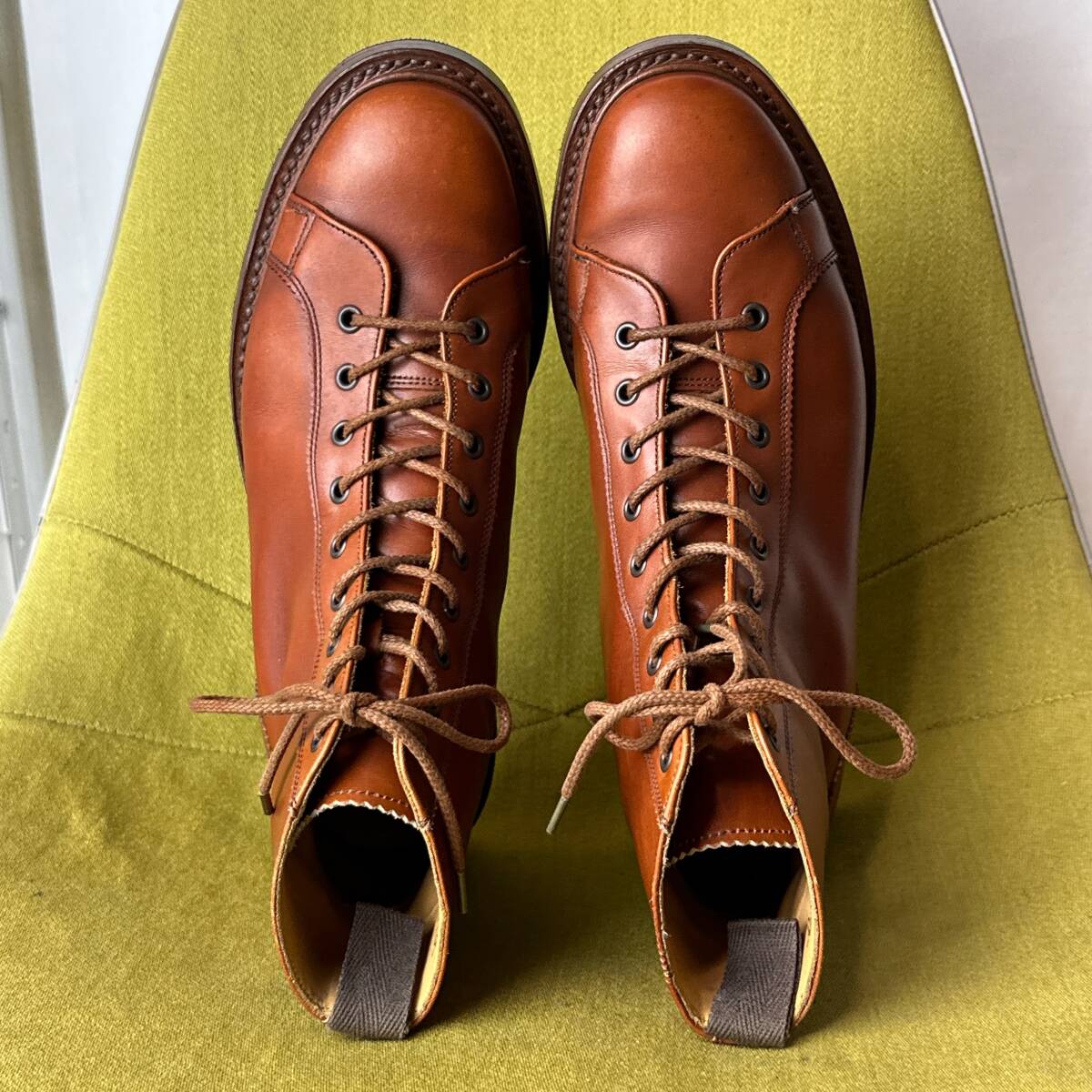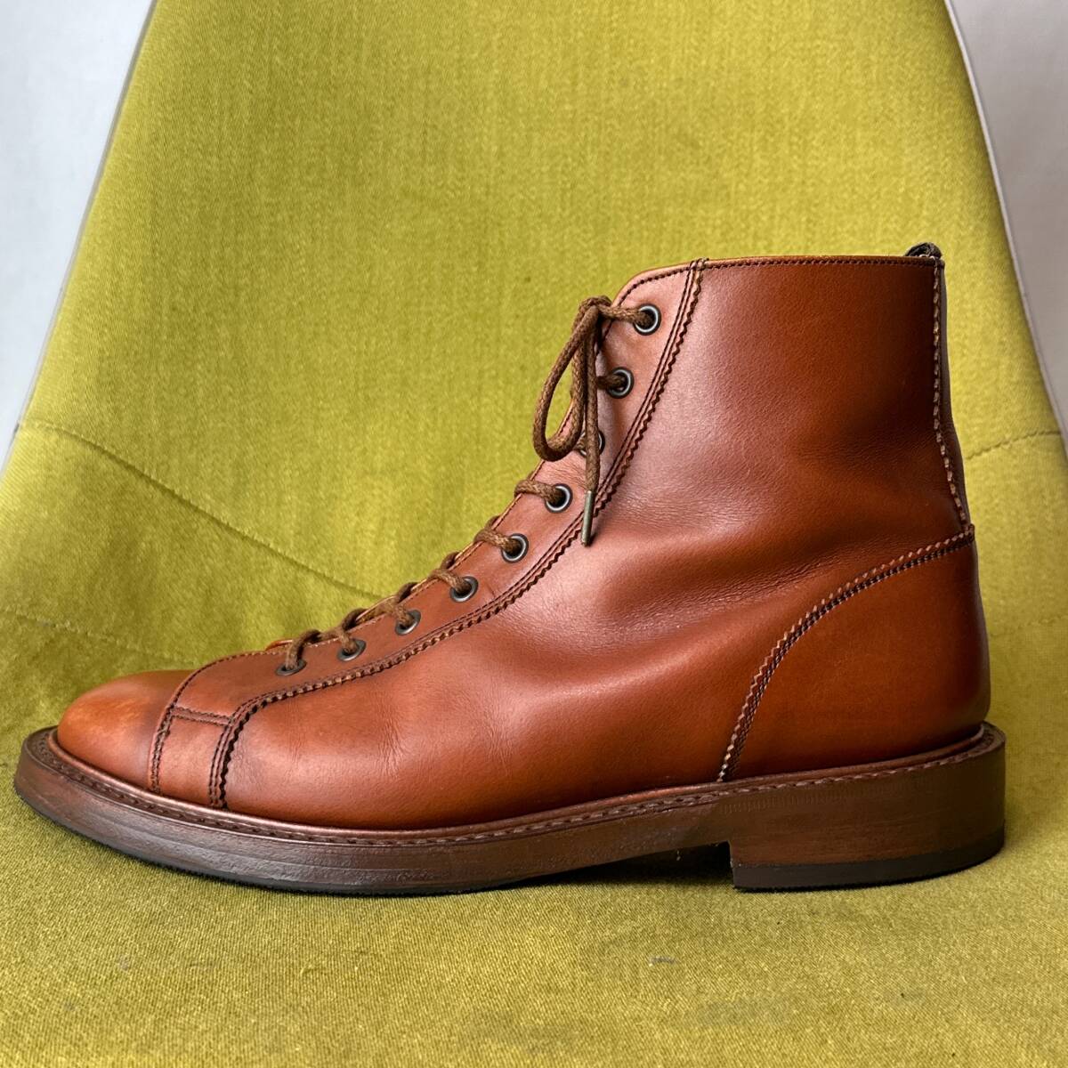 | 少し古いモデルとなり、使用感・スレ・汚れなどございますが、しっかり手入れしてありまだまだ履くことが出来ます。 製造番号が88万番台で、コバノ張り出しも大きく、カントリー色の強い個体です。 出品に際し、専門店にてビブラムのハーフラバー・ヒールに交換してあります。 コレクション整理で出品中です。途中で取りやめる可能性があることをご了承ください。 | ||||||