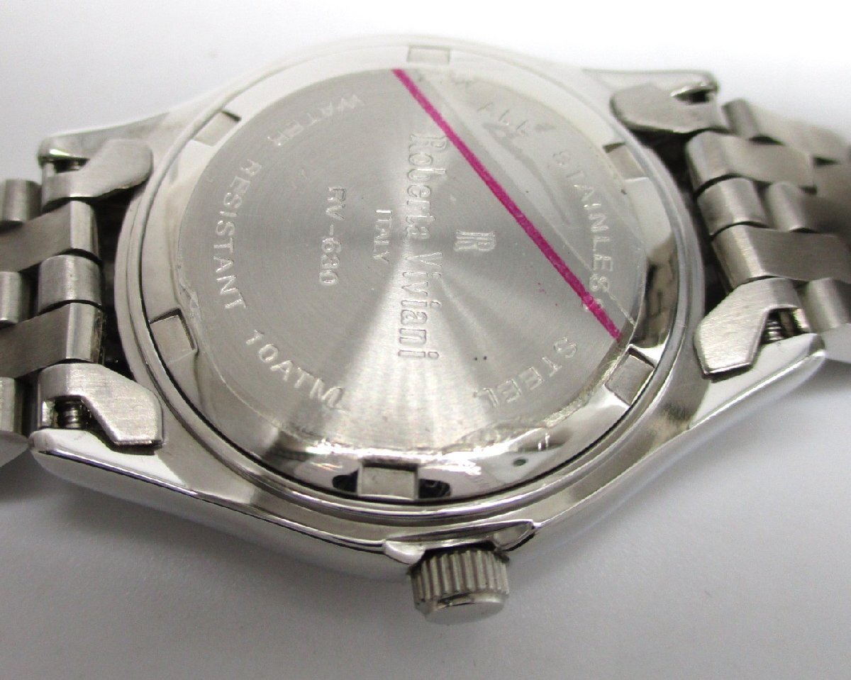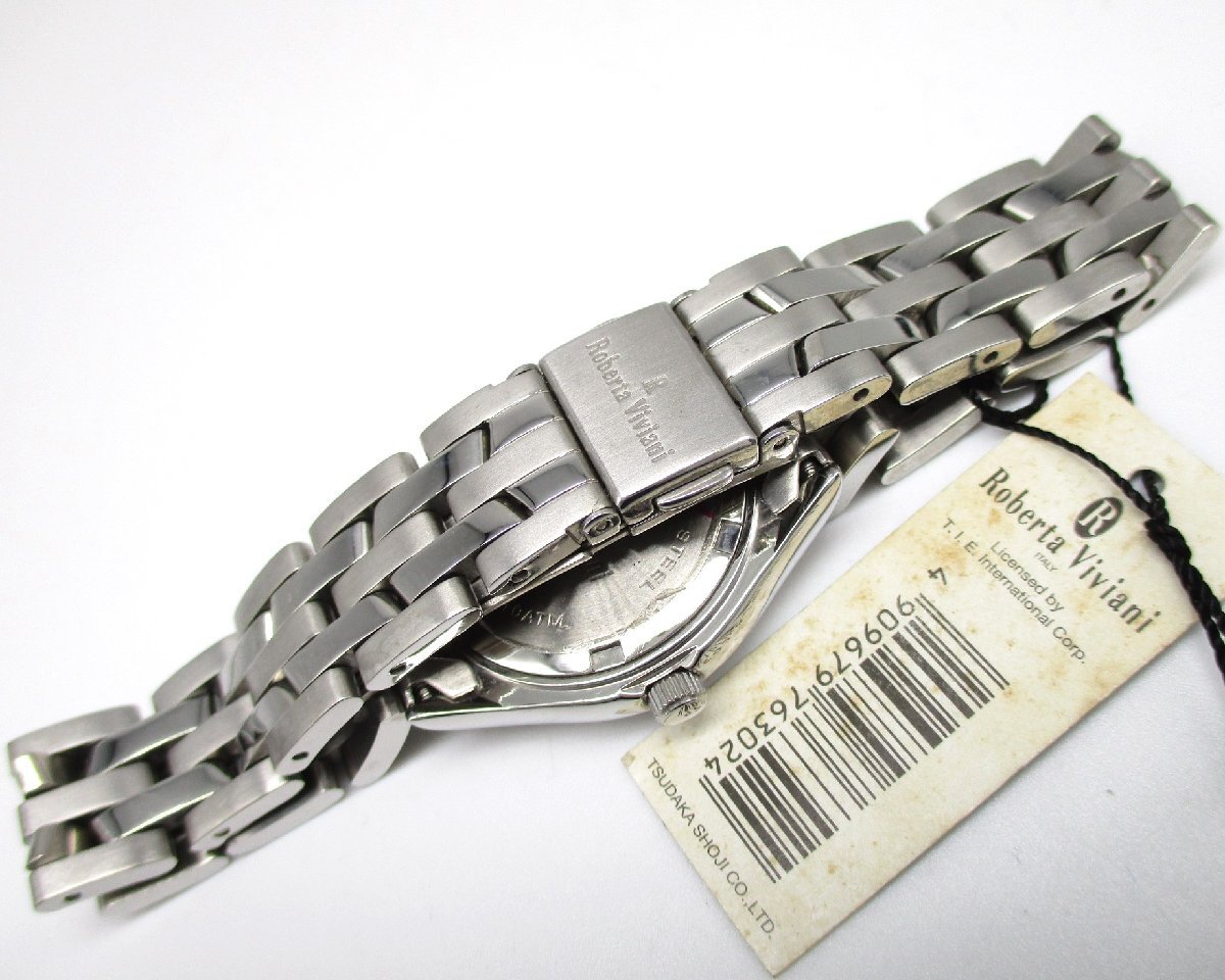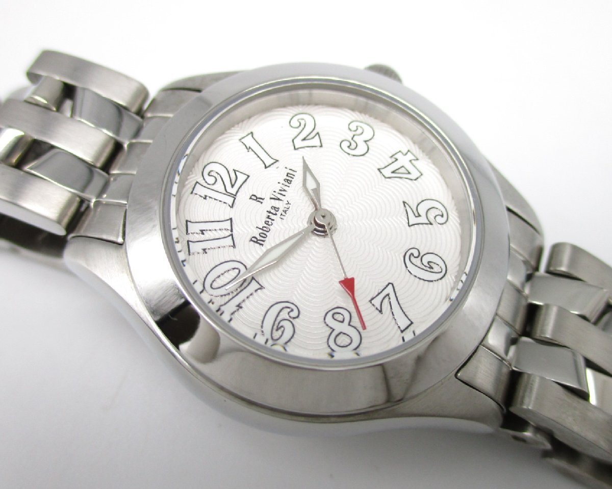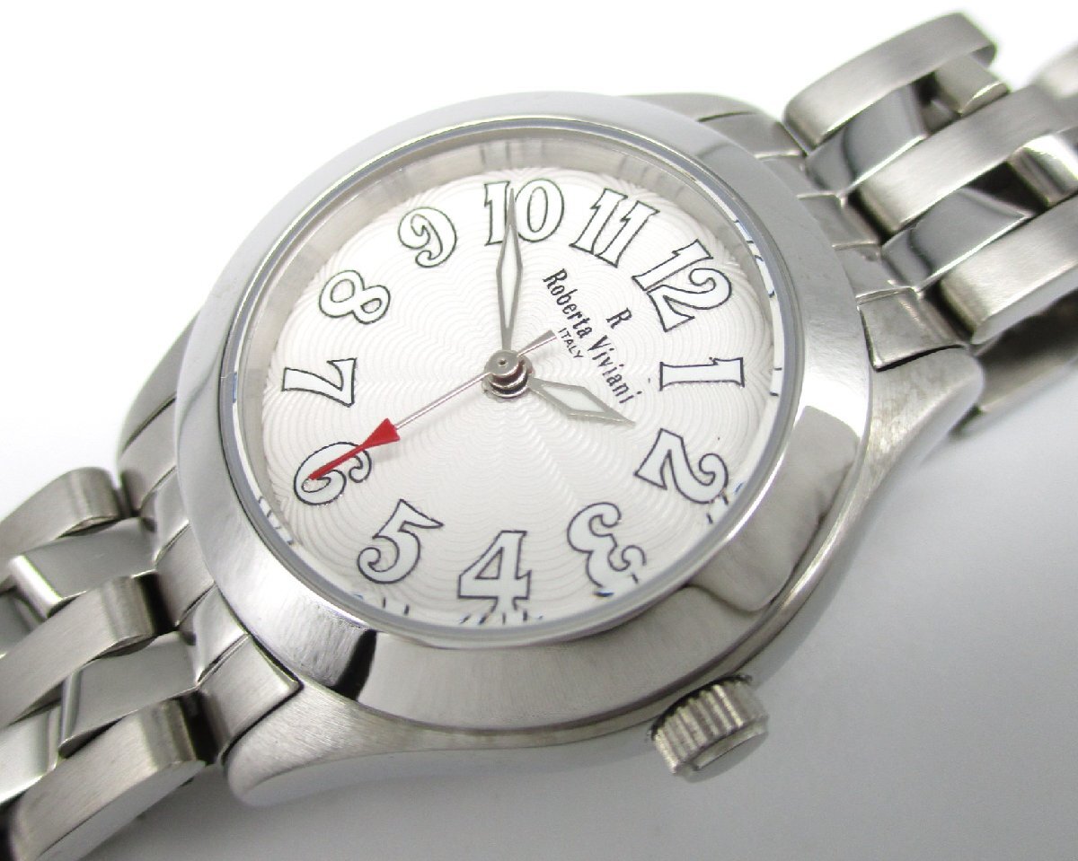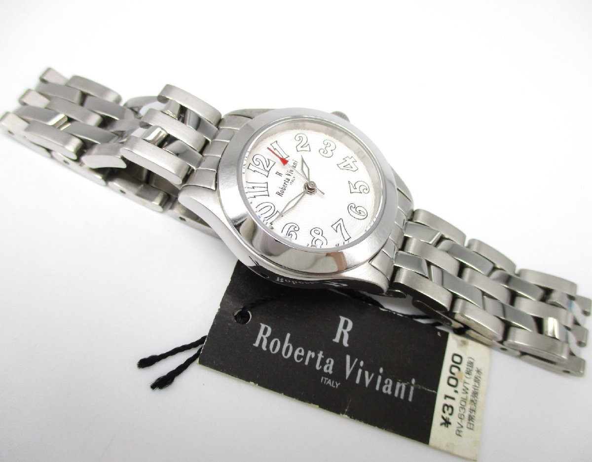 | 商品詳細 Roberta Viviani ロベルタヴィヴィアーニ レディース・クォーツ・SS・10気圧防水仕様 【型番】RV-630LWT 【税抜価格】31,000円 【およそのサイズ】ケース径:29mm 腕周り:19.5cm 【状態】未使用・・・僅かなスレ、汚れ等があった場合はご容赦ください。 クォーツ時計の入っている電池はモニター電池扱いでお願いいたします。発送までに止まった場合もそのまま発送いたします。 【付属品】紙タグ(汚れ有) | ||||