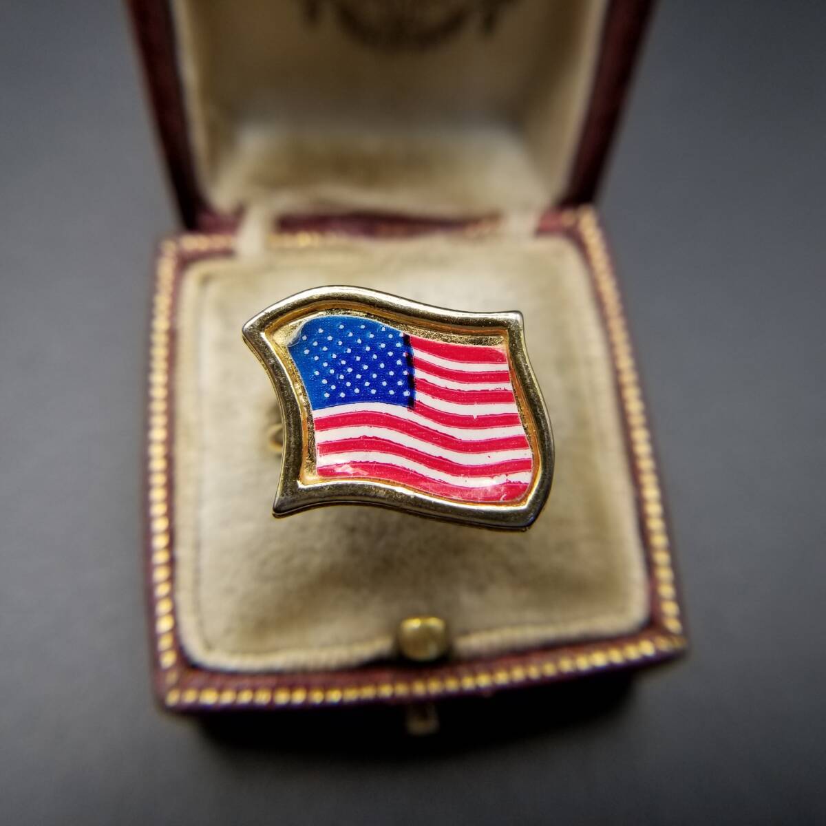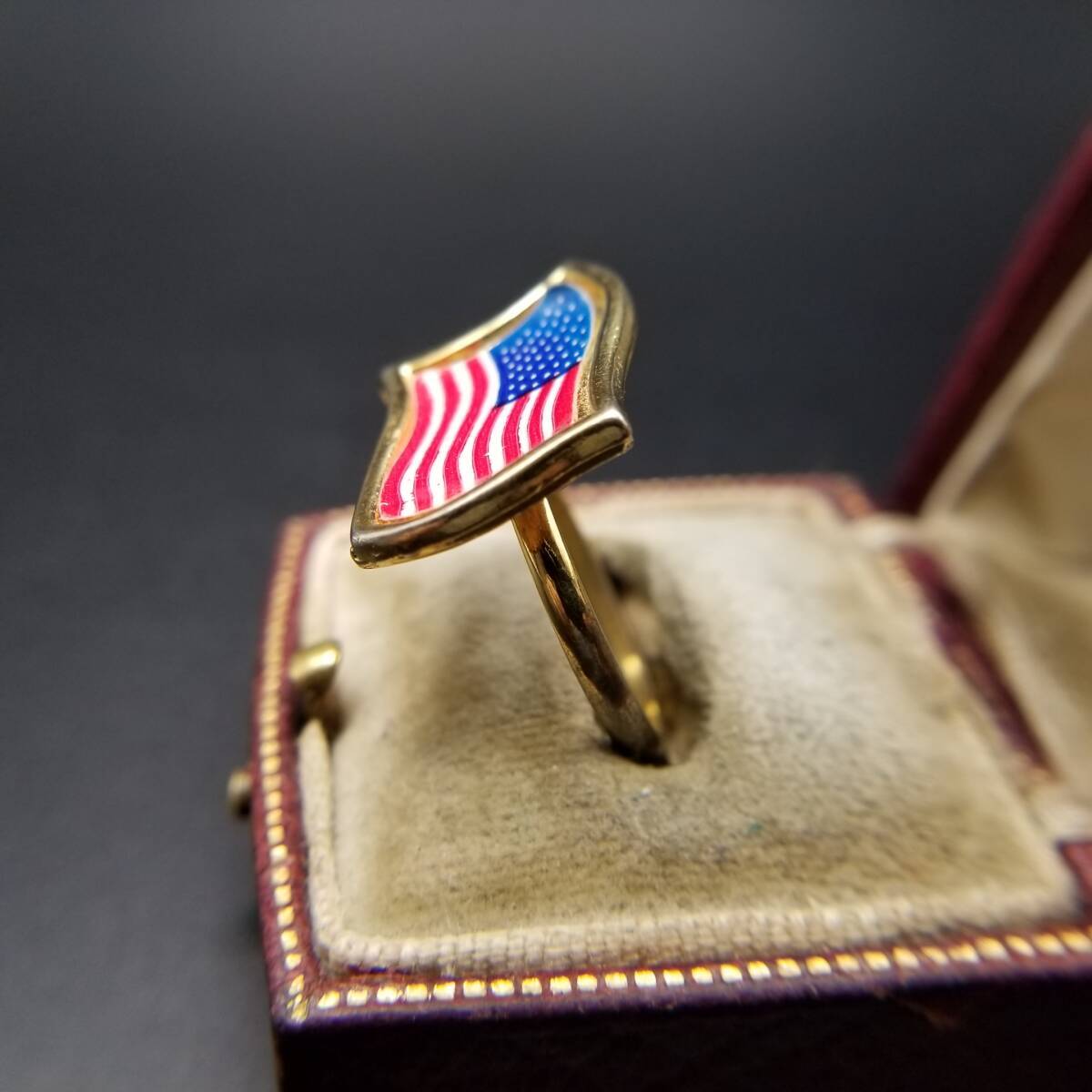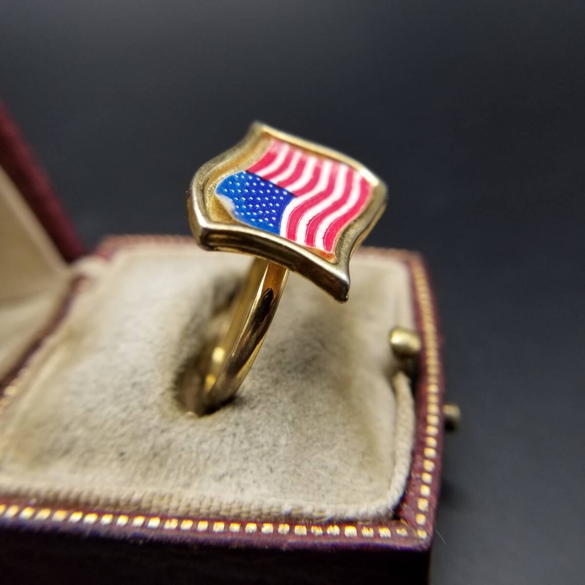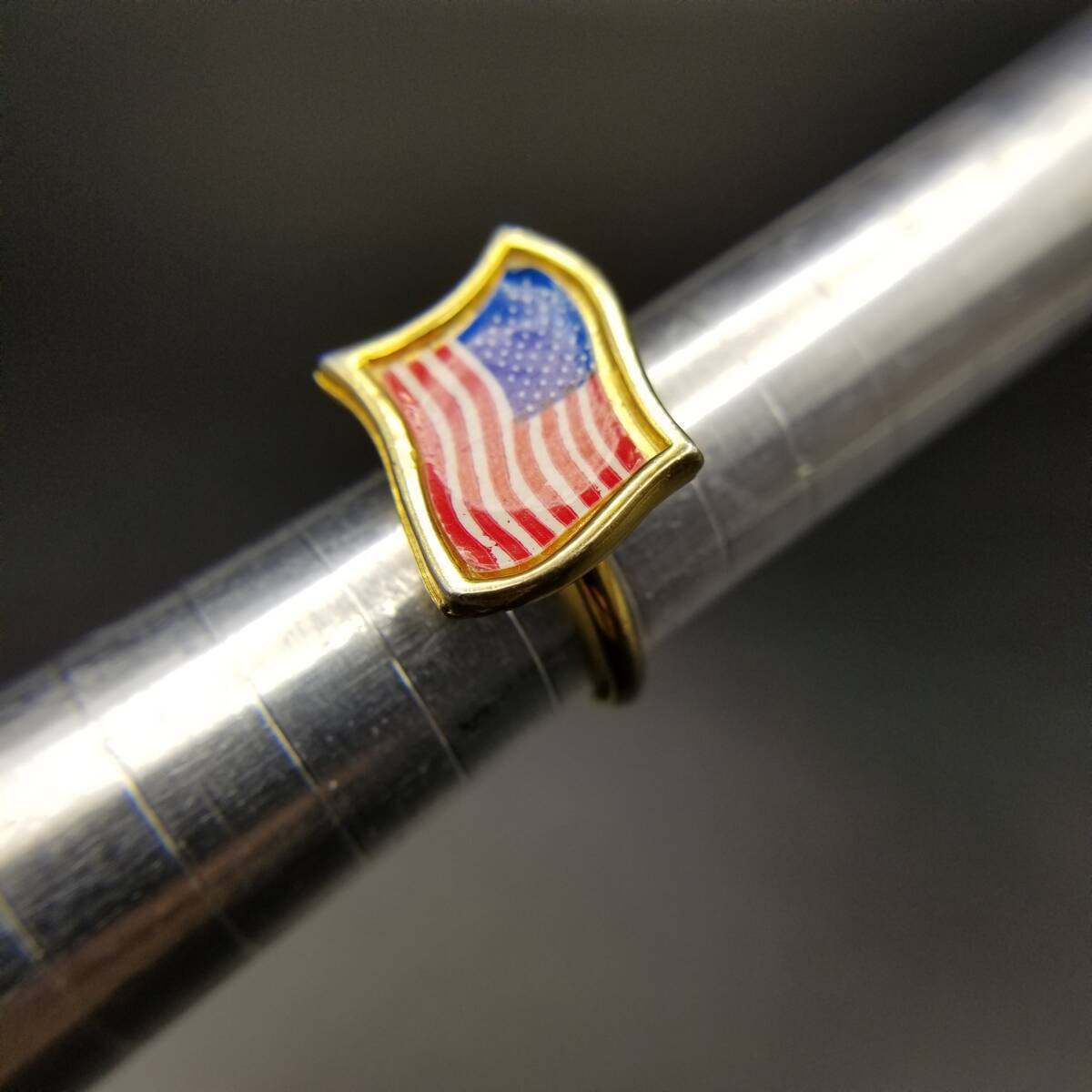 アメリカ国旗 デザイン スクエア カーブ ゴールドトーン キュート ヴィンテージ リング 指輪 ジュエリー 輸入 Y16-A