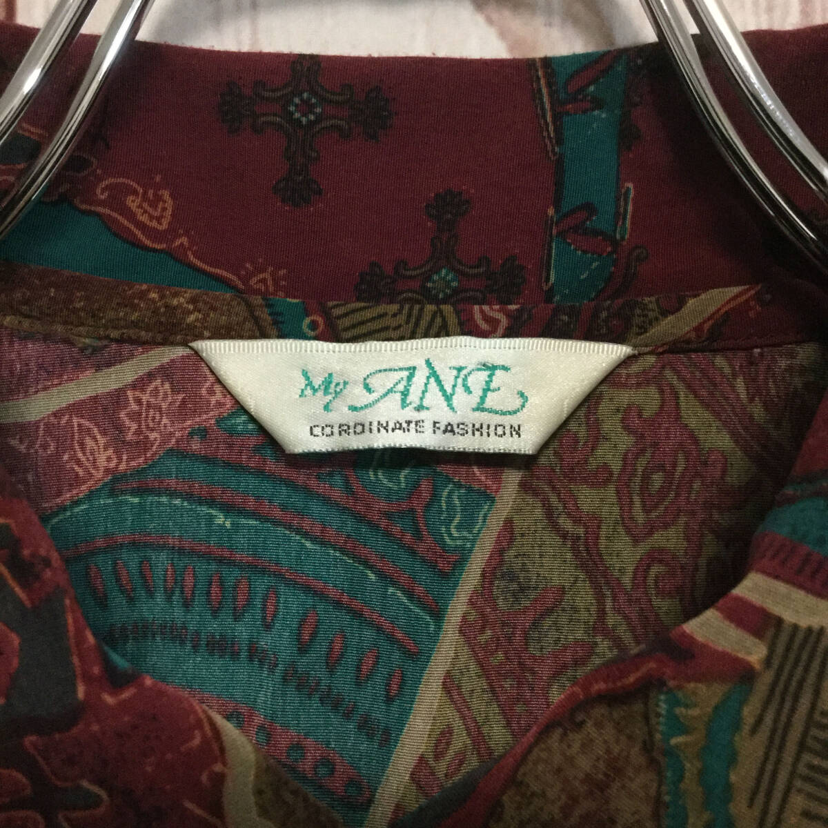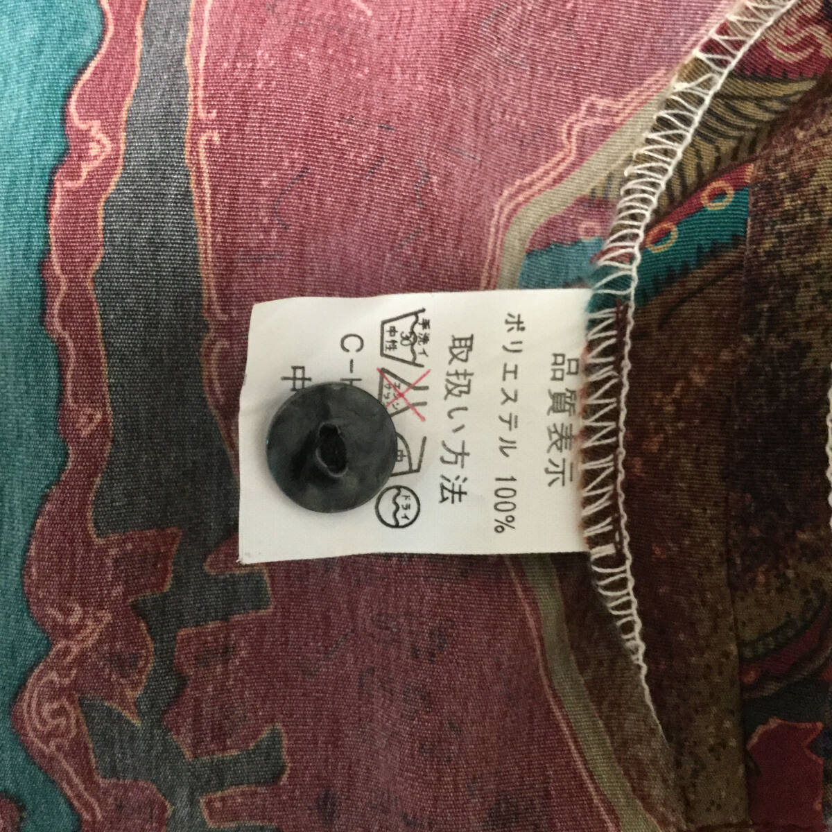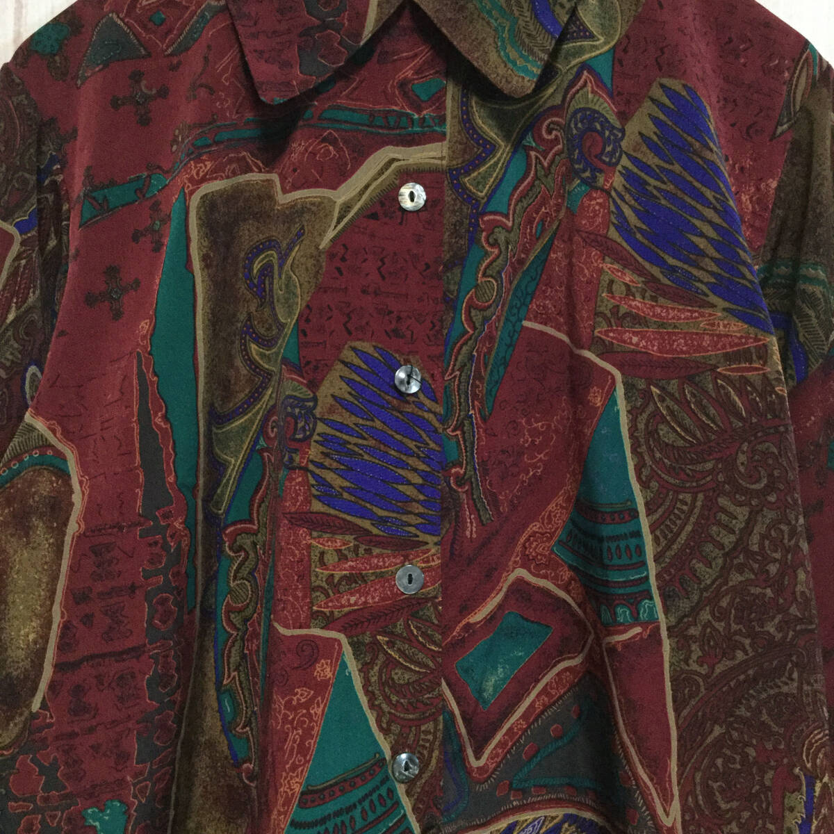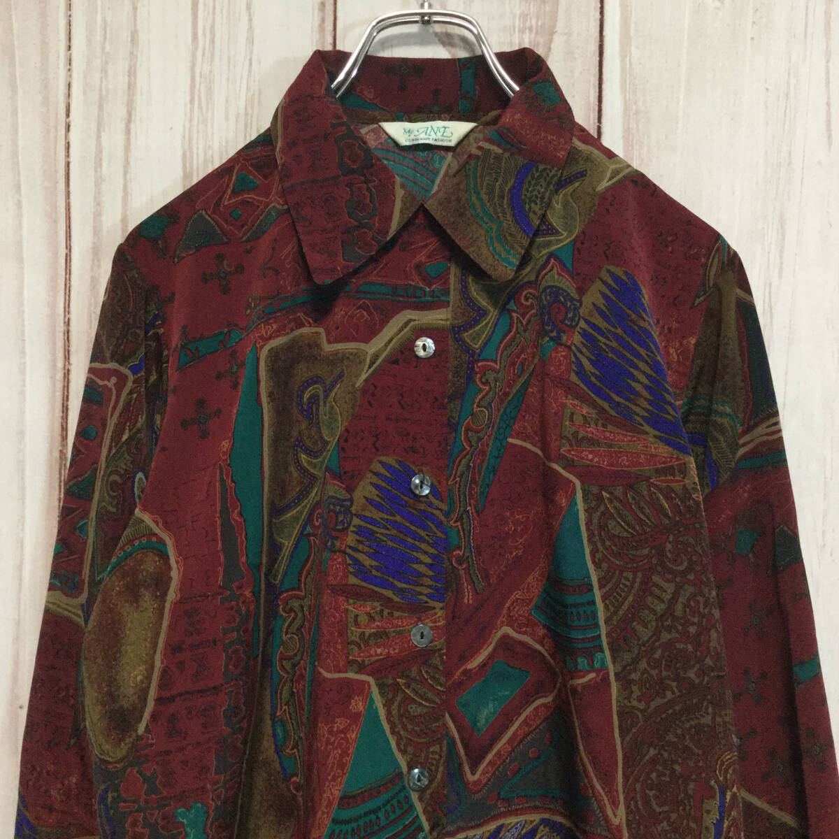 【昭和レトロ ヴィンテージ ペイズリー 長袖シャツ】 ダークカラー ヨーロピアン L相当 エンジ 古着 [231022-003]