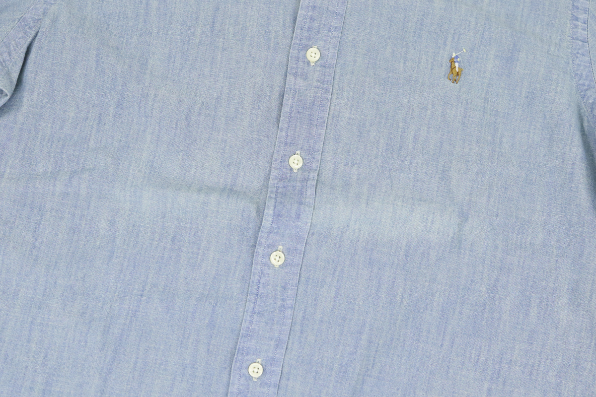 | アクセス頂きありがとうございます。 こちらはアメリカ買付新品アウトレット ラルフローレンRalph Laurenの半袖ボタンダウンシャツ。 程よい余裕のあるCLASSIC FIT。 日焼けなどのビンテージ加工が施されたシャンブレー生地、 左胸にワンポイントのポニー刺繍入り。 生産国/ MADE IN PHILIPPINES 素材/ 100% COTTON (US) M 着丈 (cm) 73.5 身幅 (cm) 58 肩幅 (cm) 46.5 袖丈 (cm) 22 *着丈:背面襟元中央~裾まで直線、身幅: 脇下~脇下まで直線、 肩幅: 肩先~肩先まで直線、袖丈:肩先~袖口まで直線、 裄丈:背面襟元中央~肩を通って袖口まで *サイズは慎重に計測しておりますが、計測方法や商品の材質、 個体差で誤差が出ることがございますのでご了承ください。 アウトレット理由 日焼けがあります。 0104488 その他、多数出品しております。 こちらもご覧下さい |