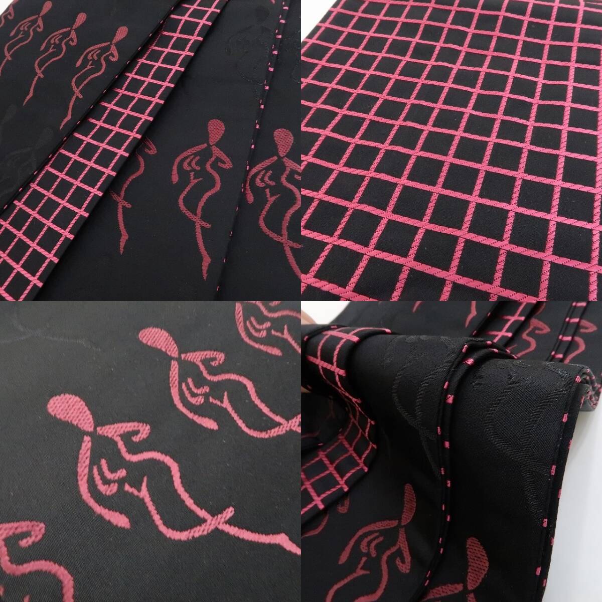 tomihisa 美品 着物 リバーシブル“静寂に女心を解いて魅せるラインダンスとモダンな格子”半幅小袋帯 3585