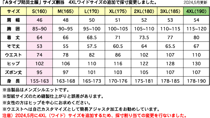 なお、掲載するサイズ割当表は新シリーズ用なので、旧サイズ割り当て/着丈と身長以外、17mm程度のプラスマイナスの誤差があります。