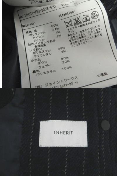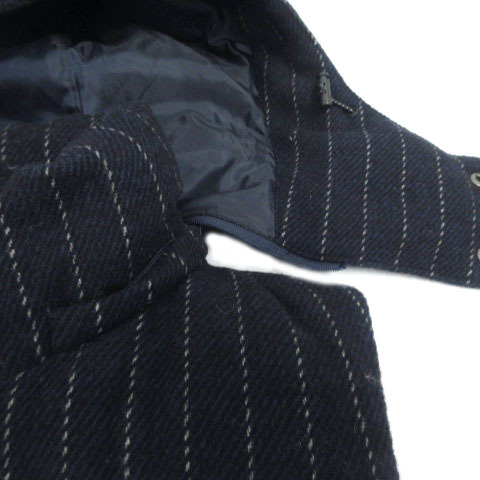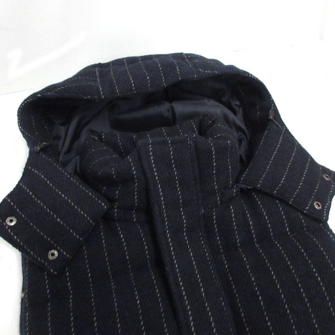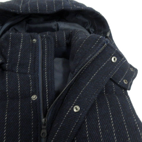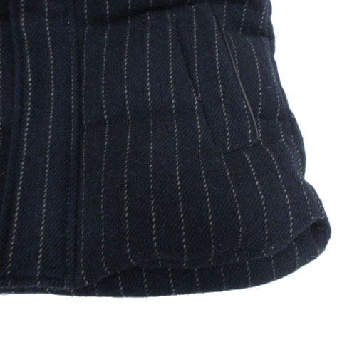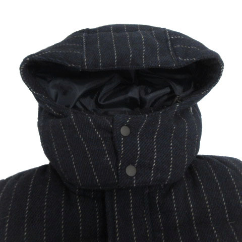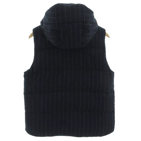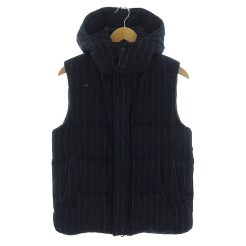インヘリット INHERIT ダウンベスト スタンドカラー フード ダブルジップ 起毛 ウール混 ダウン80% ドットストライプ 紺 青 グレー M