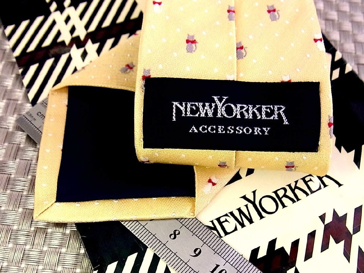 ♪34058C♪良品【刺繍 猫 ねこ 動物 ドット 柄】ニューヨーカー【NEWYORKER】ネクタイ