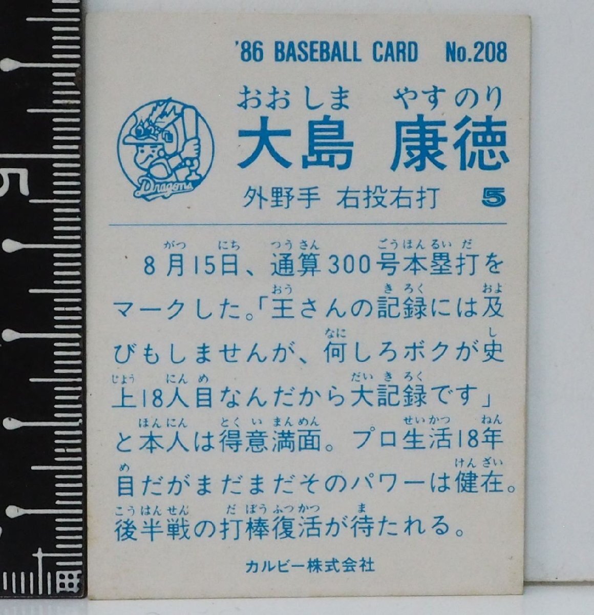 86年 カルビー プロ野球カード No.208【大島 康徳 外野手 中日ドラゴンズ】昭和61年 1986年 当時物 Calbee おまけ 食玩 BASEBALL【中古】