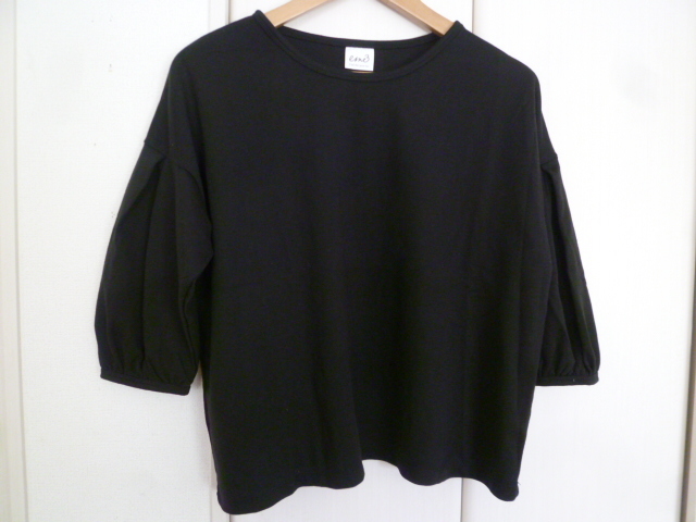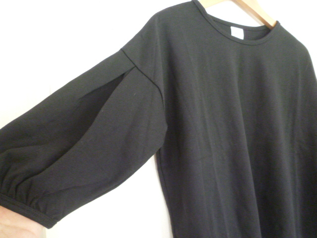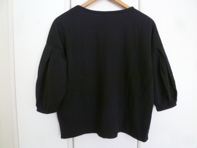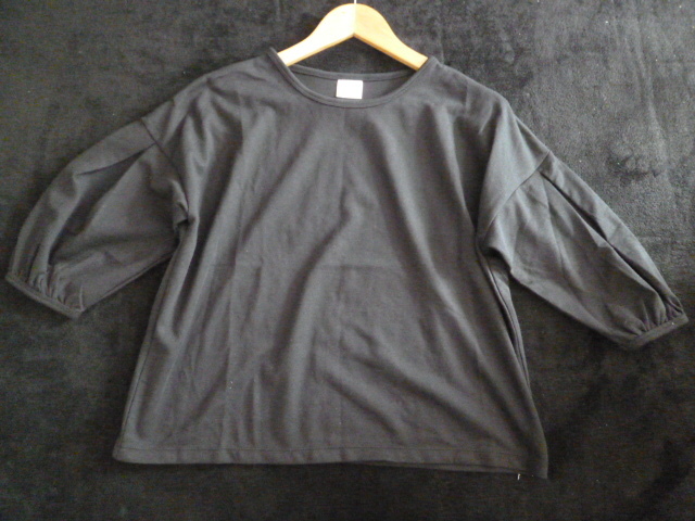 ene3/フェリシモ◇黒バルーン袖ボリューム袖カットソーL/ブラック◇A74kt