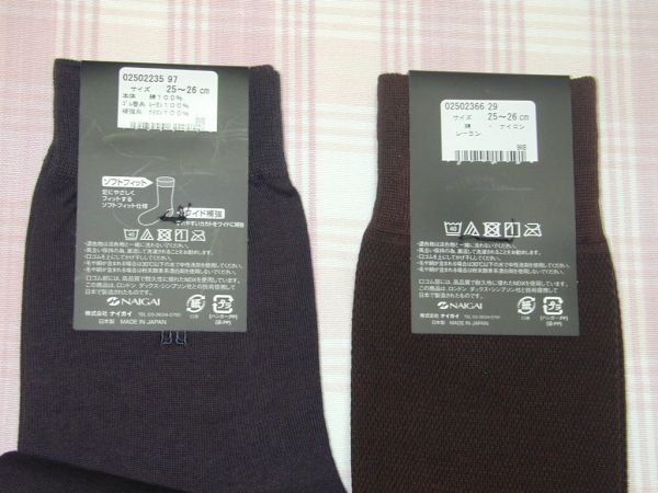 グレーの方~綿100% ゴム捲き糸レーヨン100% 補強糸ナイロン100% 薄手の生地 かかとからの長さ約19cm 2点とも両側にロゴ刺繍入り。