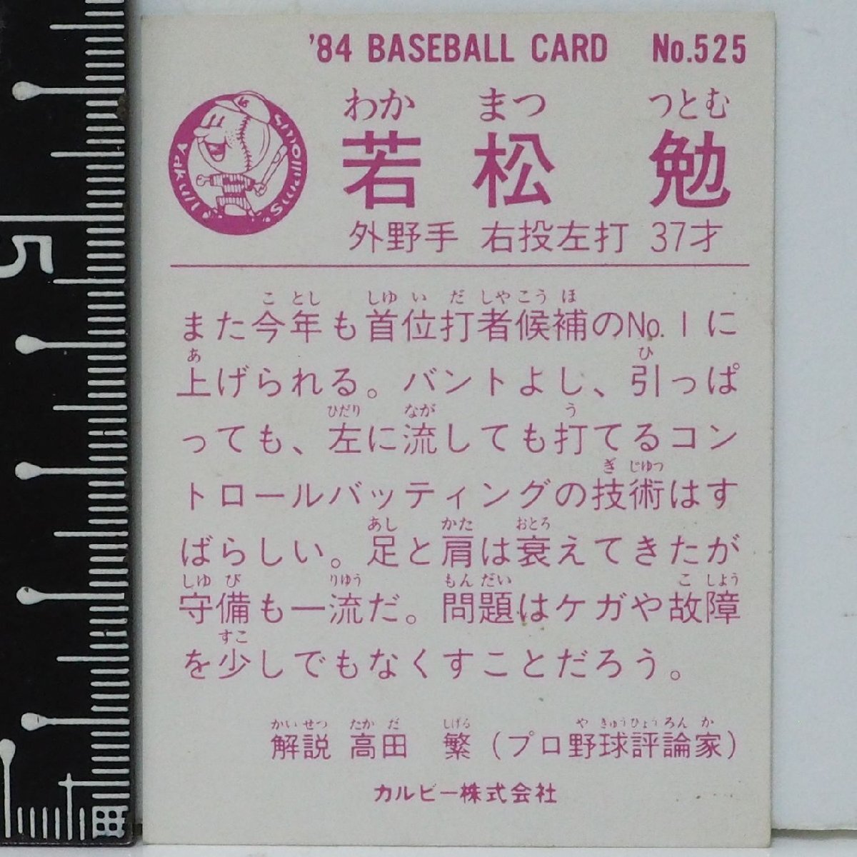 84年 カルビー プロ野球カード No.525【若松 勉 外野手 ヤクルト スワローズ】昭和59年 1984年 当時物 Calbee おまけ 食玩 BASEBALL 中古