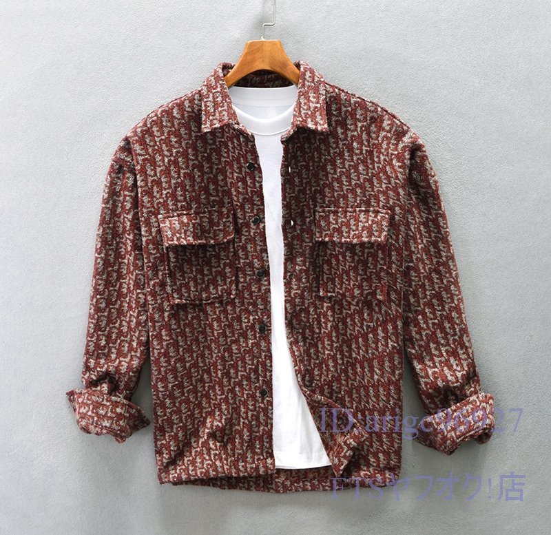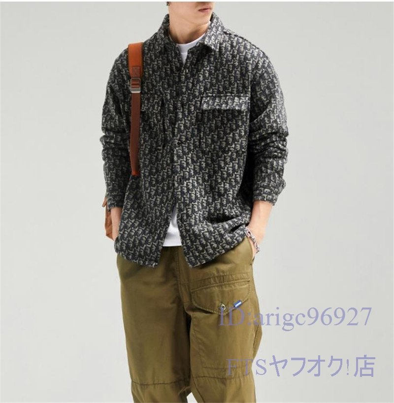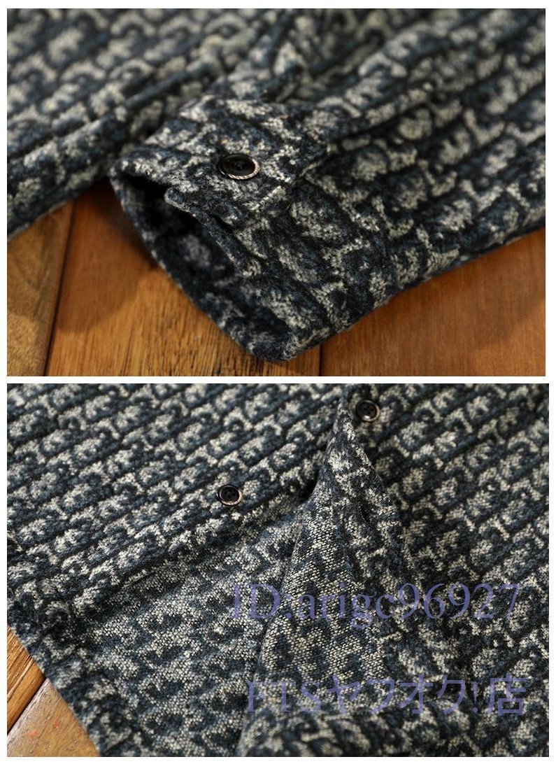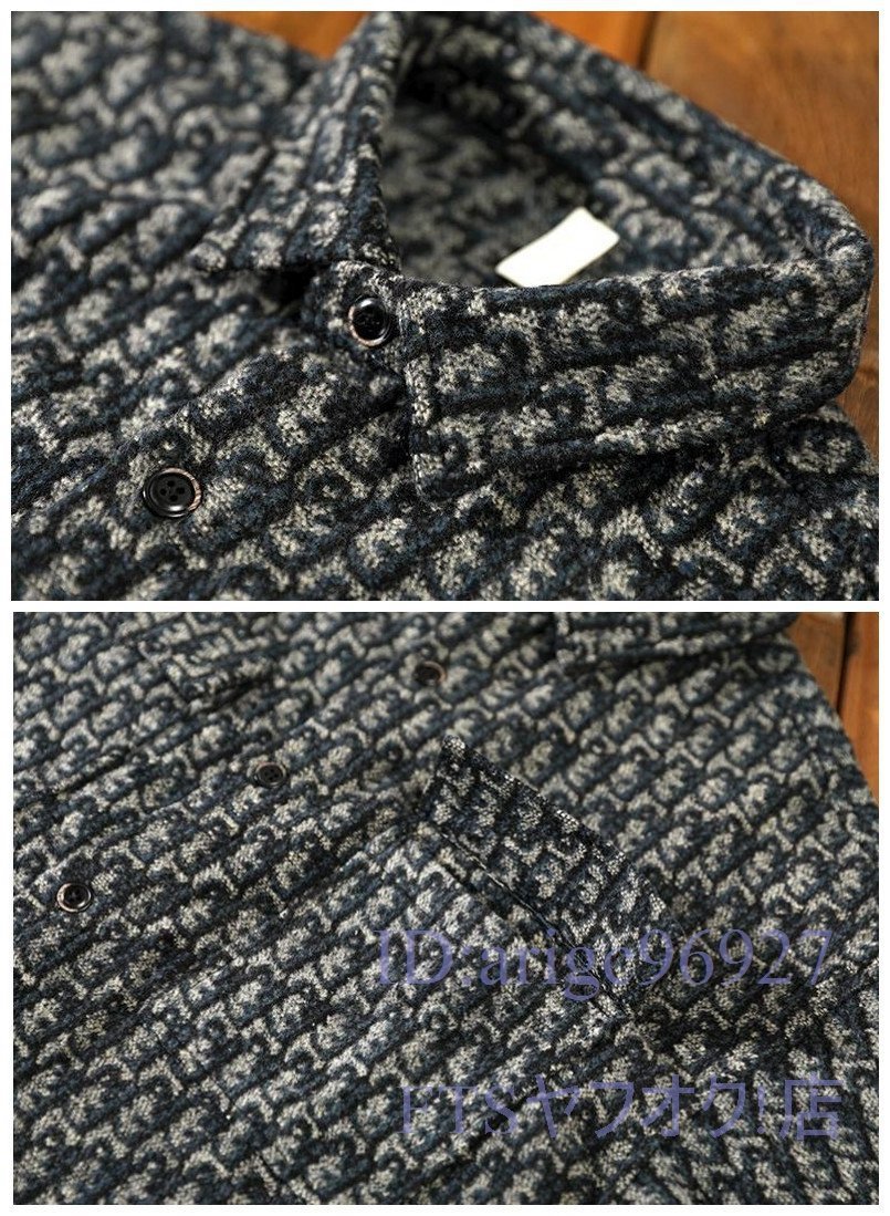 U352☆新品シャツジャケット ウール混ん メンズ* 秋冬ジャケット ジャンパー トップス ブルゾンカジュアル 紺色 L