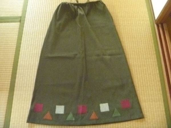 *  中古 美品 ベロアスカート ロング丈 モスグリーン色を1000円にて出品です。