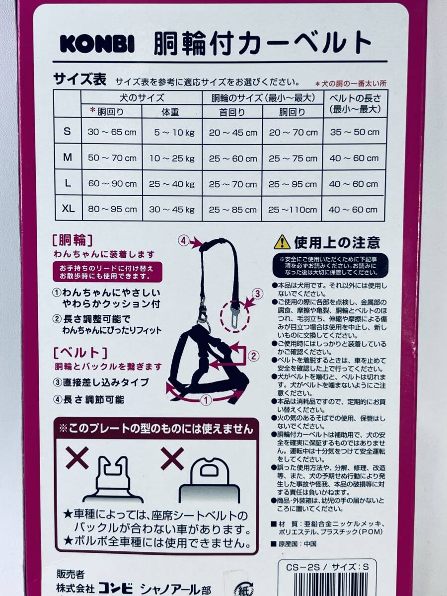 KONBI コンビ 【犬用 胴輪付カーベルト Sサイズ】 ペット用品 首輪 リード シートベルト 車 ドライブ わんちゃん お散歩
