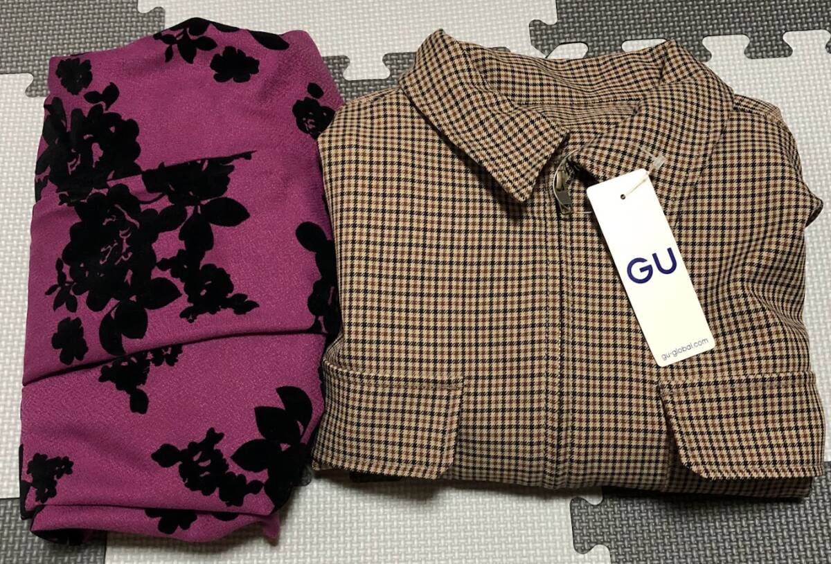 GU ジーユー チェッククロップドシャツジャケット 長袖 XLサイズ & ITS'DEMO イッツデモ フラワージャガードスカート Fサイズ ★ タグ付き