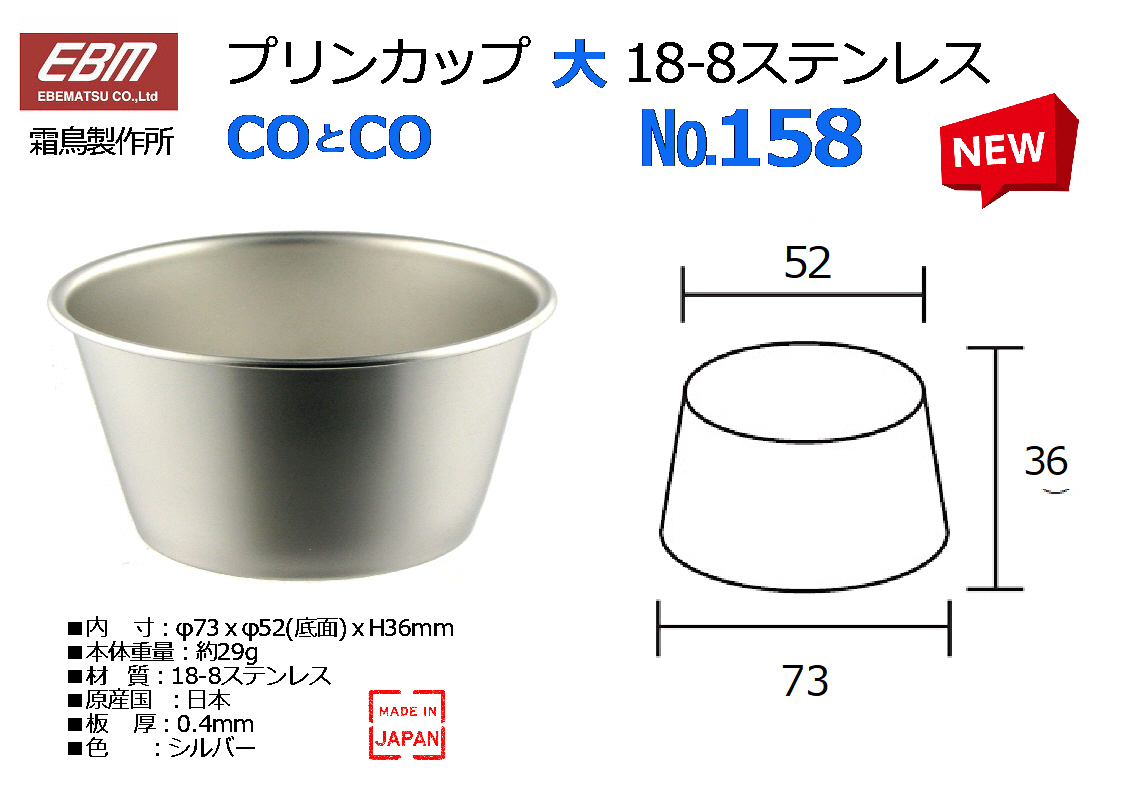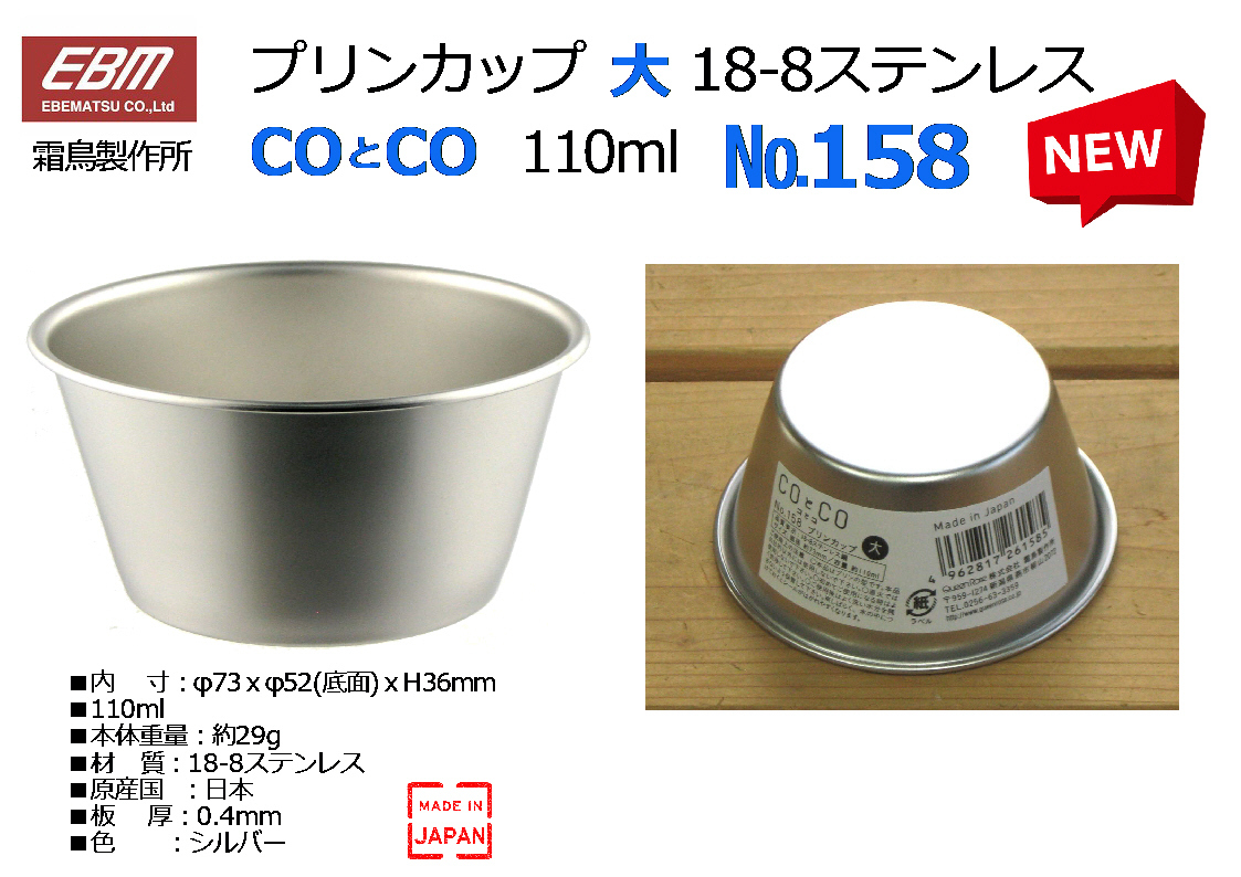 【20個セット】EBM(霜鳥製作所)COとCO プリンカップ◆№158 18-8ステン φ73 110ml 20入★新品
