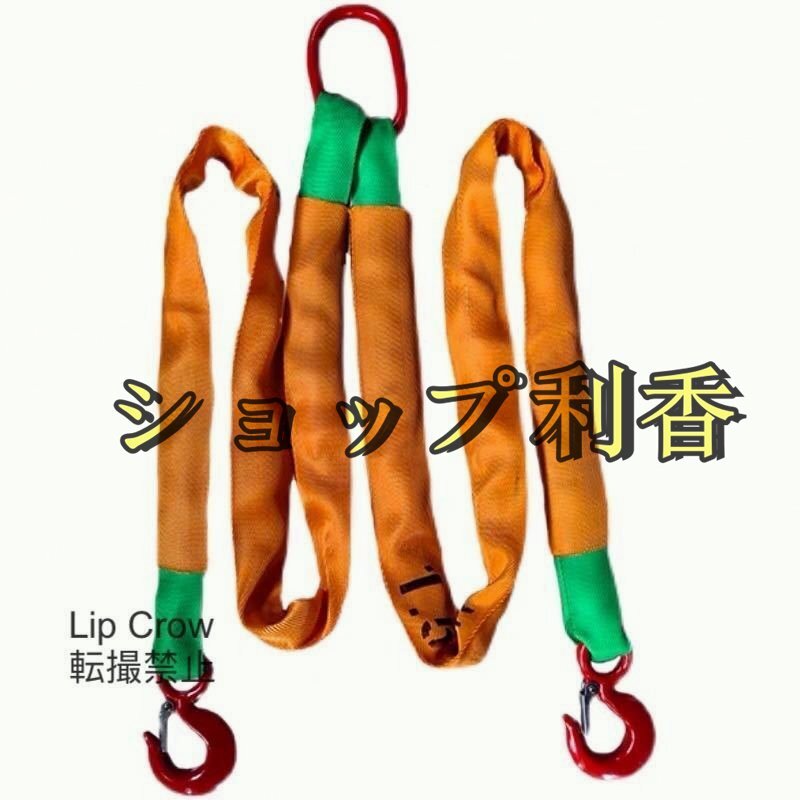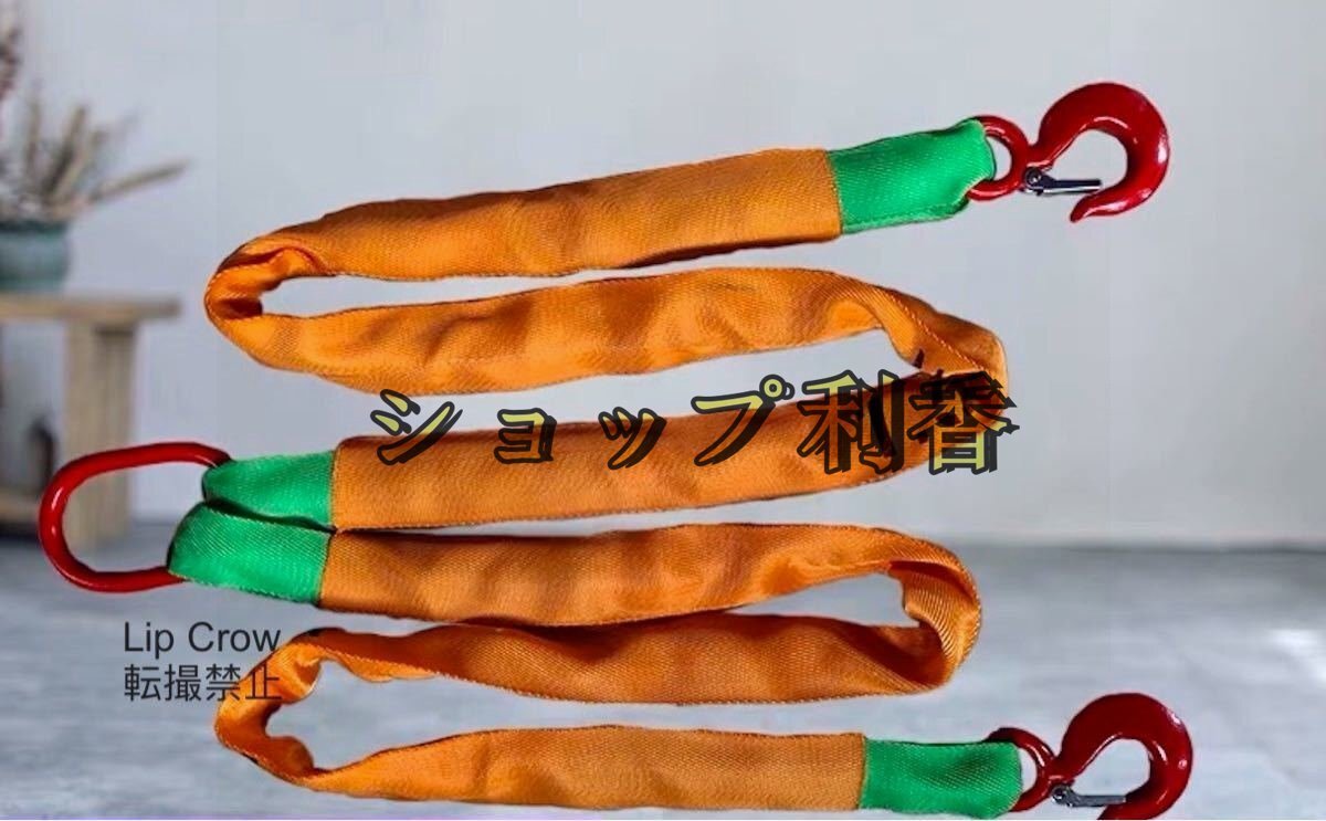 2本吊り ベルトスリング スリングベルト 合金鋼製フック付き リング付き ポリエステル製 1m 耐荷重2t 作業用 荷吊り