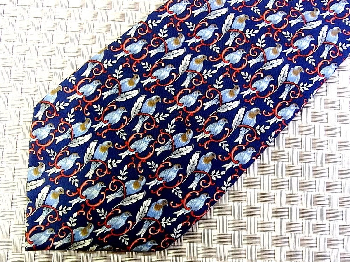 ♪33770D♪状態並品【鳥 葉っぱ 植物 柄】スパダチーニ【SPADACINI】ネクタイ