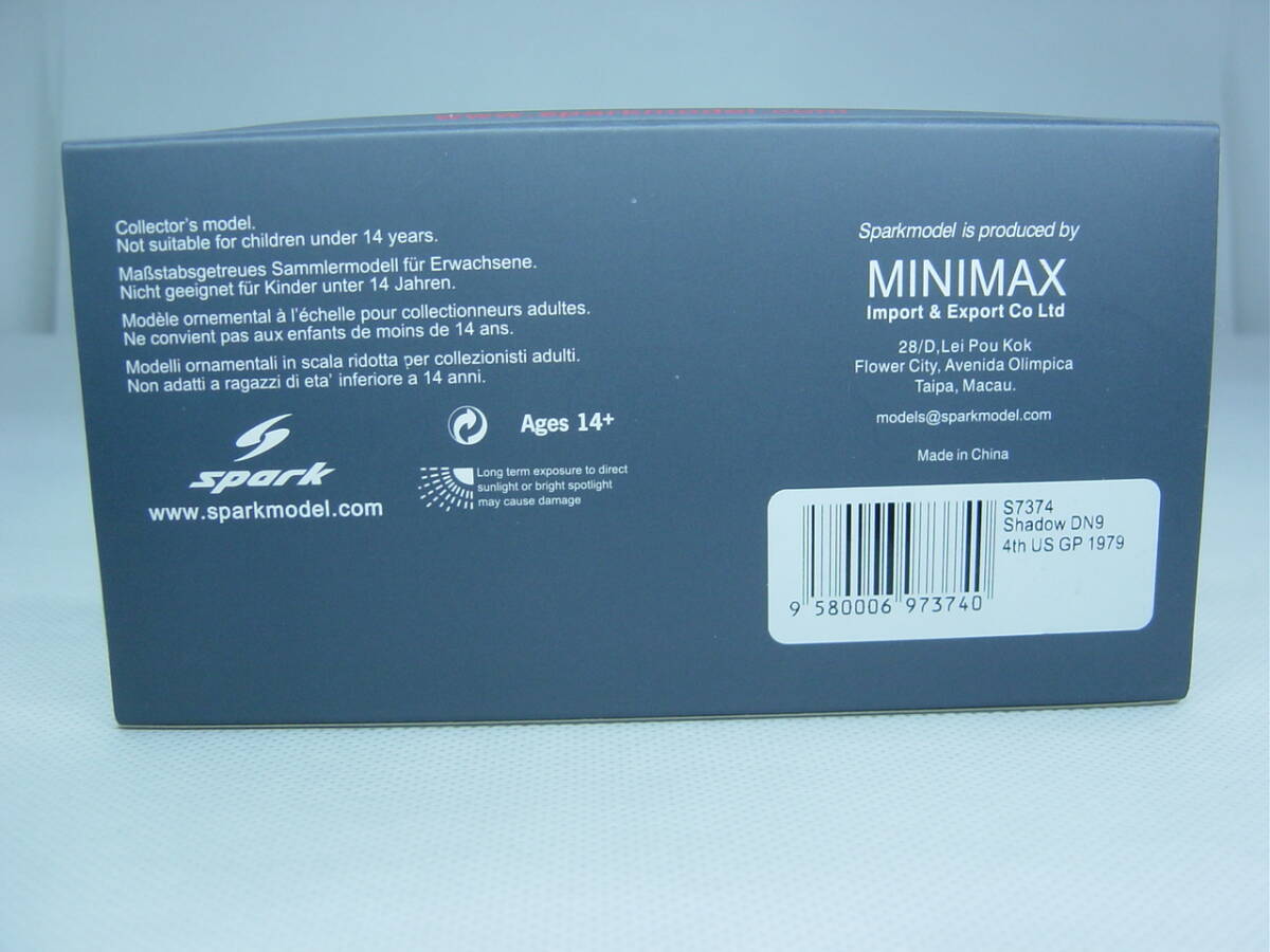 spark 1/43 Shadow DN9 4th US GP 1979 #18 Elio De Angelis シャドウ アンジェリス アメリカGP
