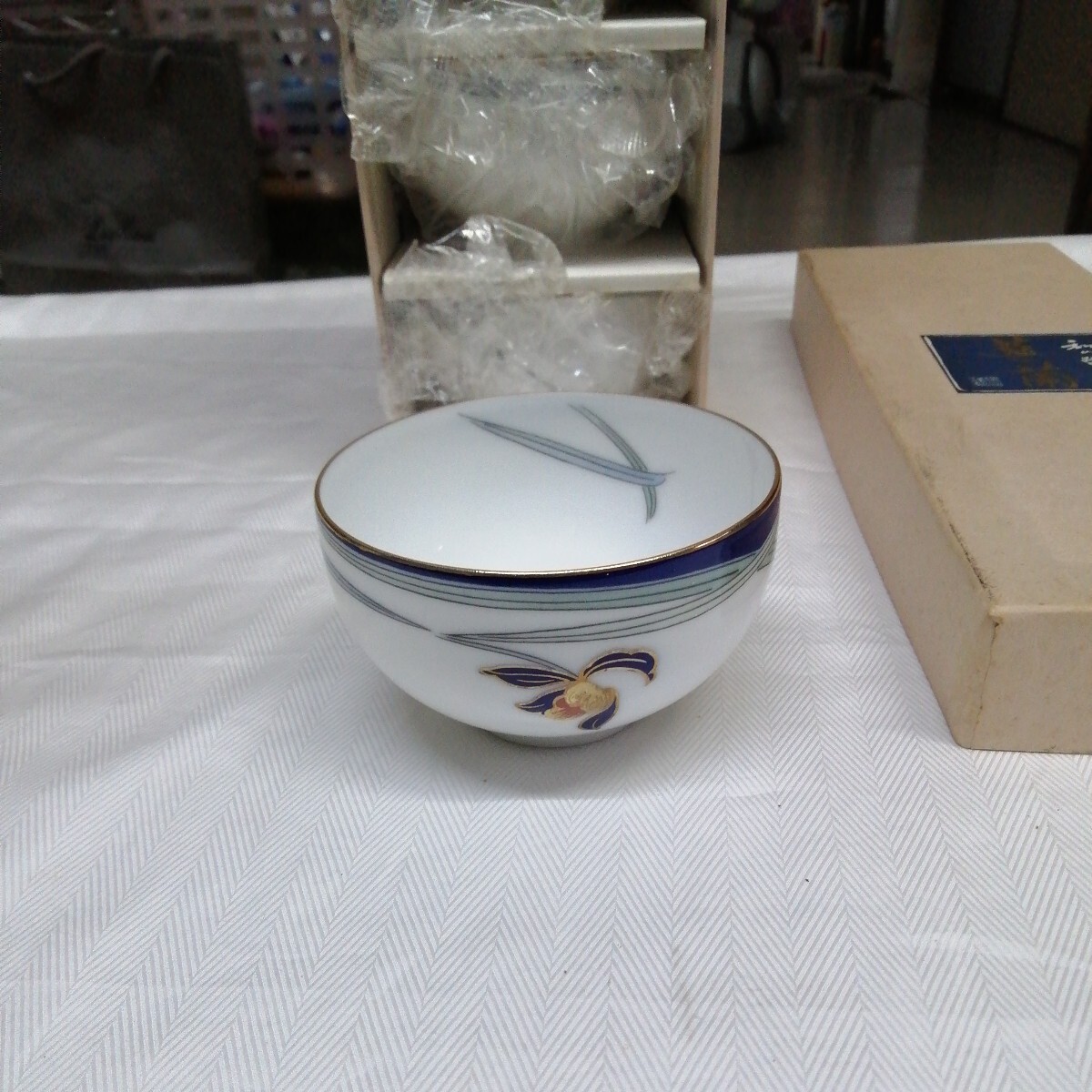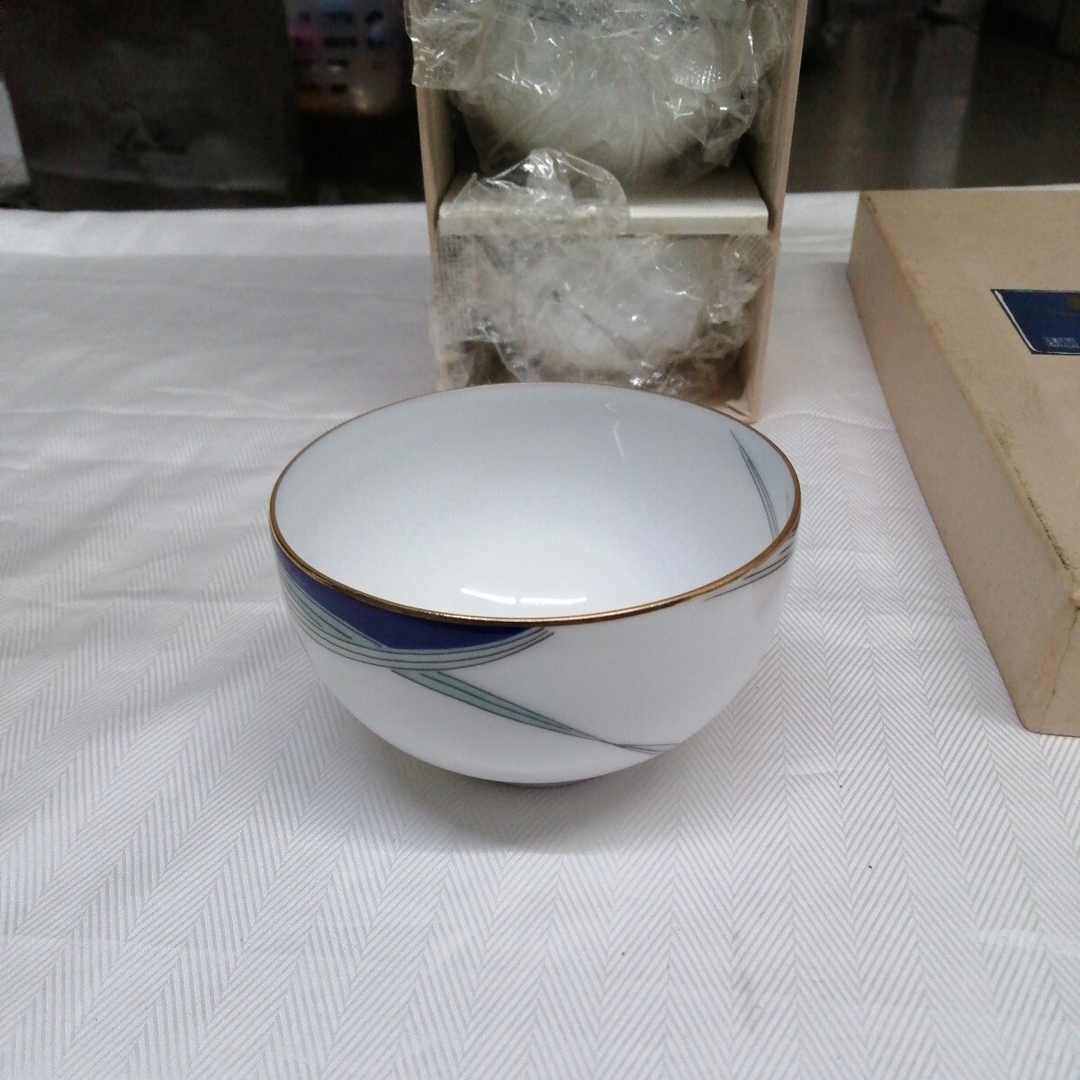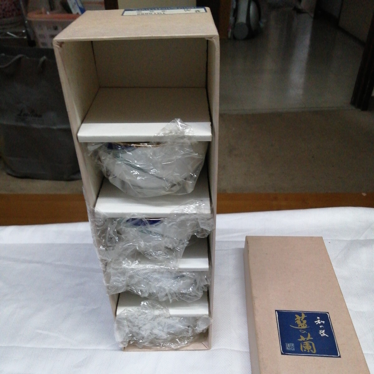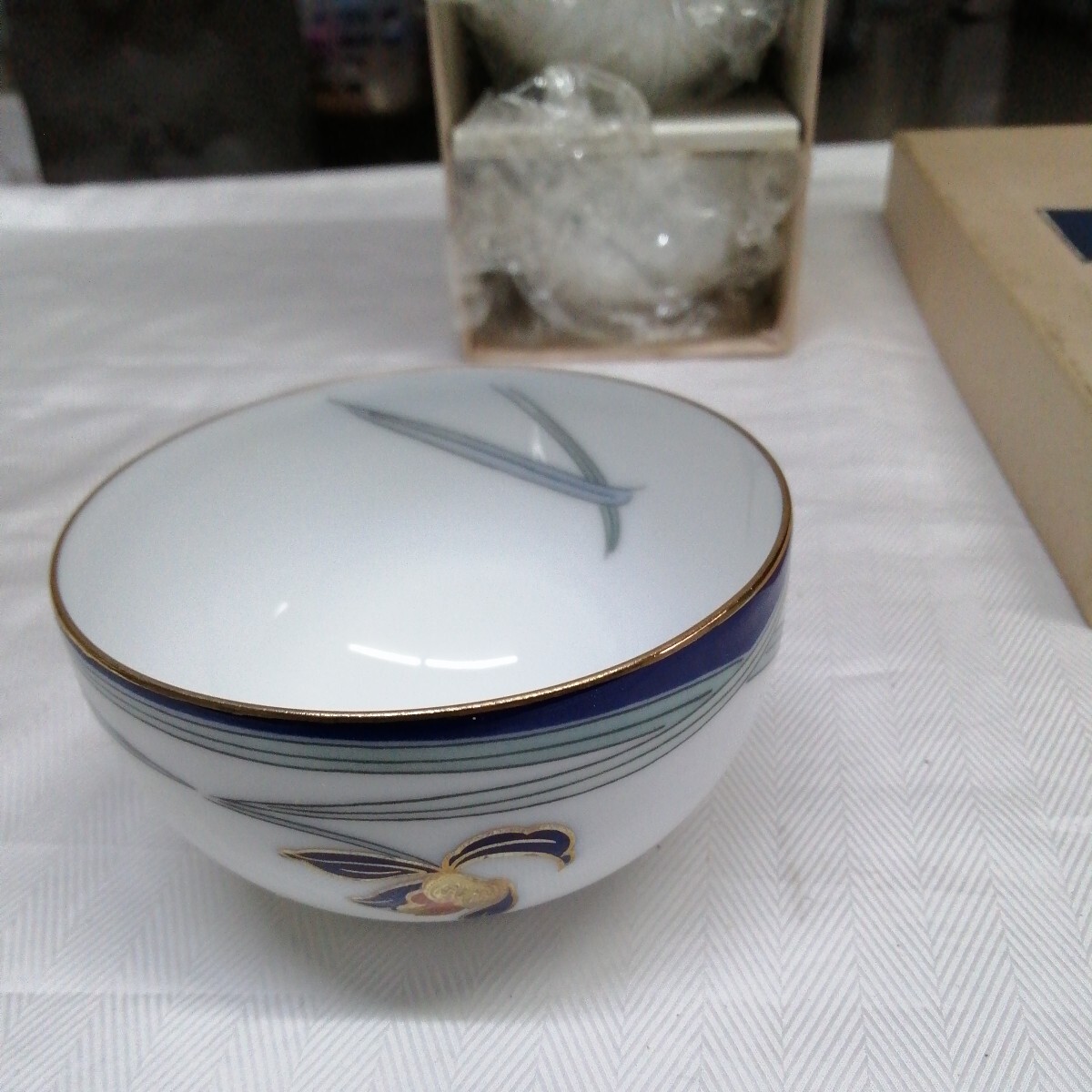 未使用品 計5客 保谷謹製 藍 蘭 湯呑 茶器 和 金縁