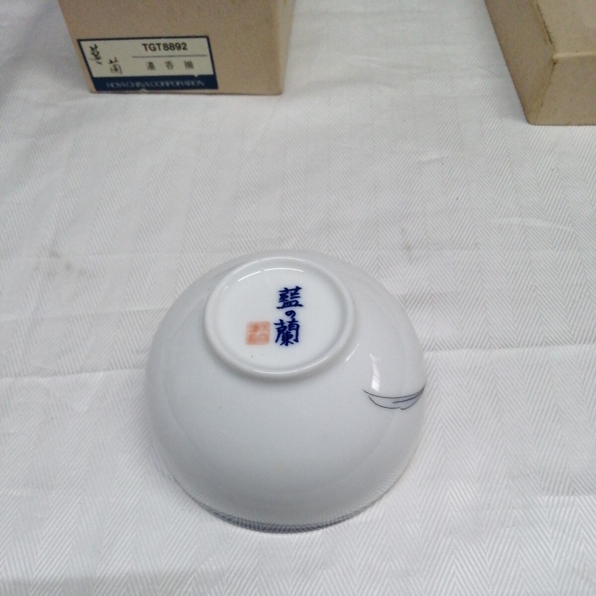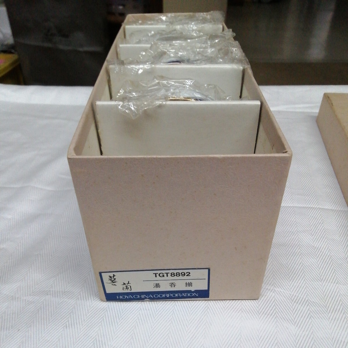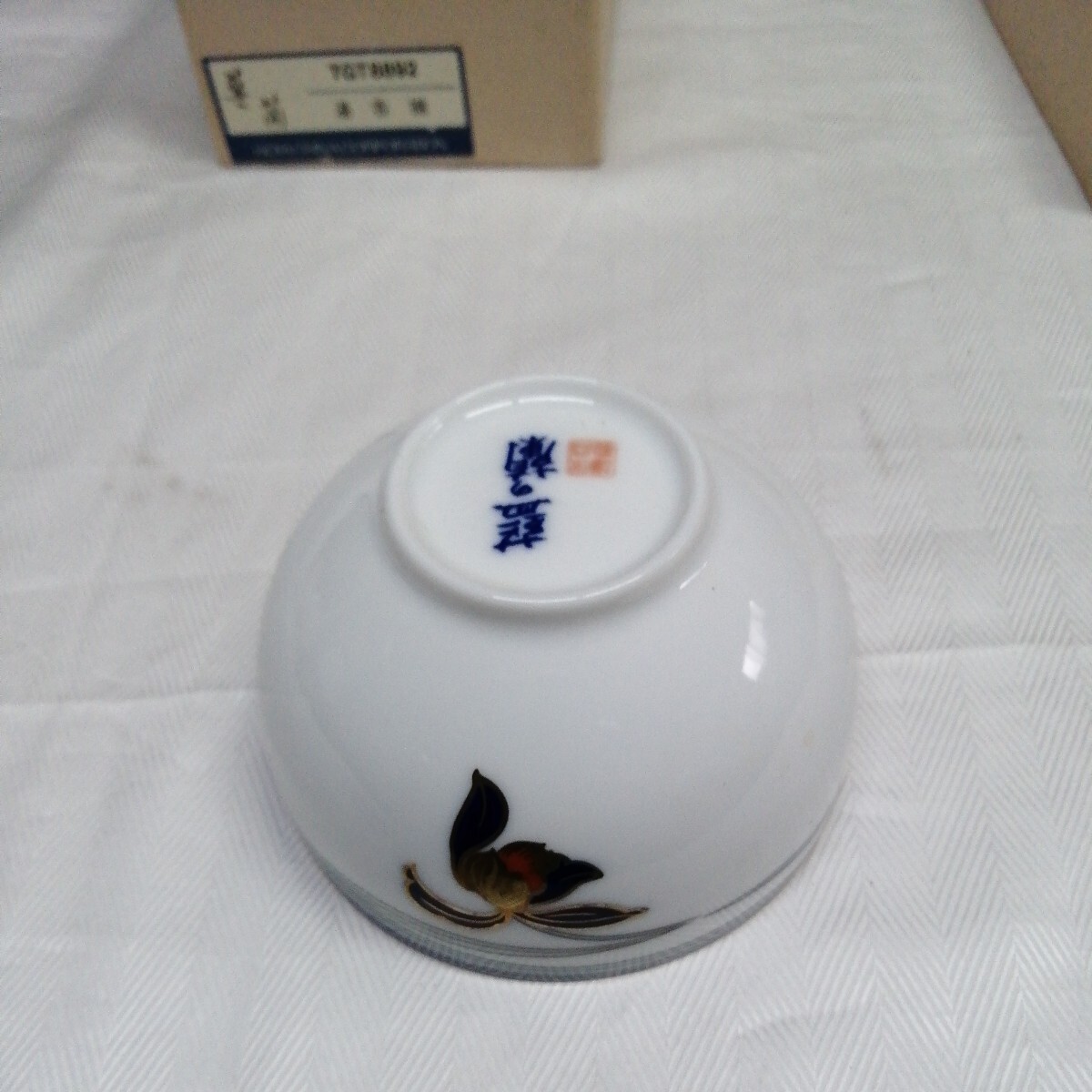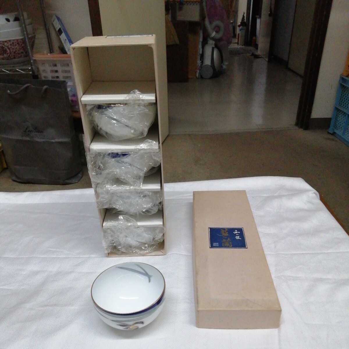 未使用品 計5客 保谷謹製 藍 蘭 湯呑 茶器 和 金縁