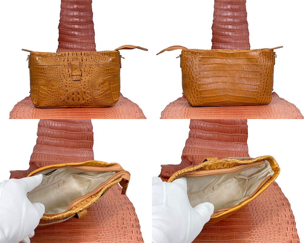 | ◆素材 | 外側:クロコダイル(背部革)・牛革(クロコダイル型押し) 内側:生地 ショルダー紐:表-牛革(クロコダイル型押し)・裏(牛革) |