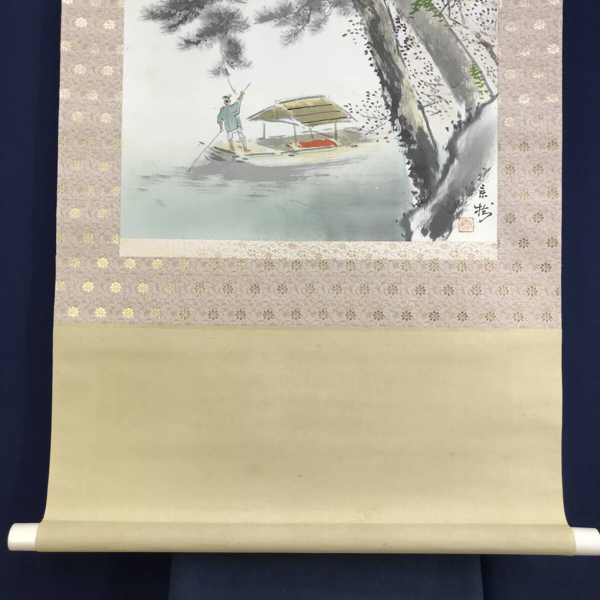 真作/今井景樹/嵐峡舟下り図/横物/山水図/保津川下り図/掛軸☆宝船☆AF-270