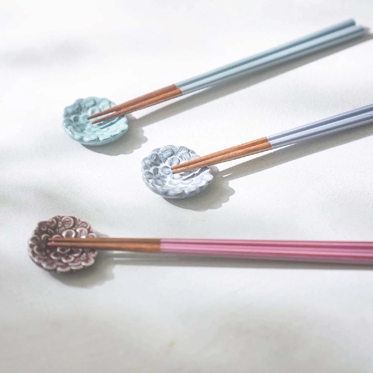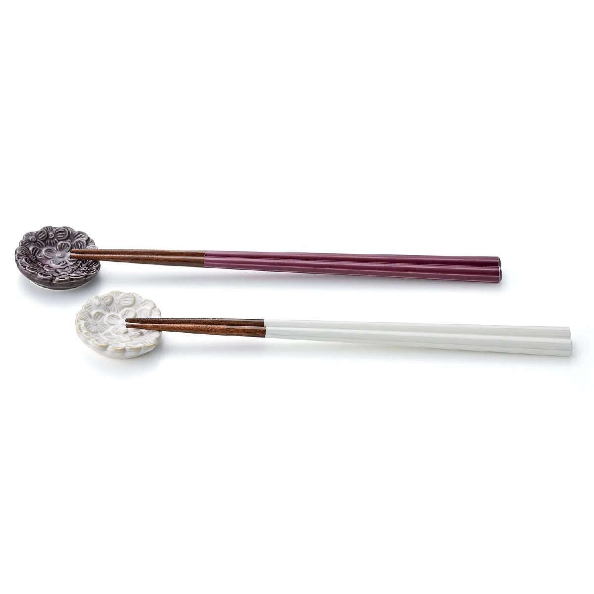 毎日使うおはしは世代を問わず贈り物におすすめです。小花レリーフの箸置きは豆皿としてテーブルコーディネートのアクセントにも。