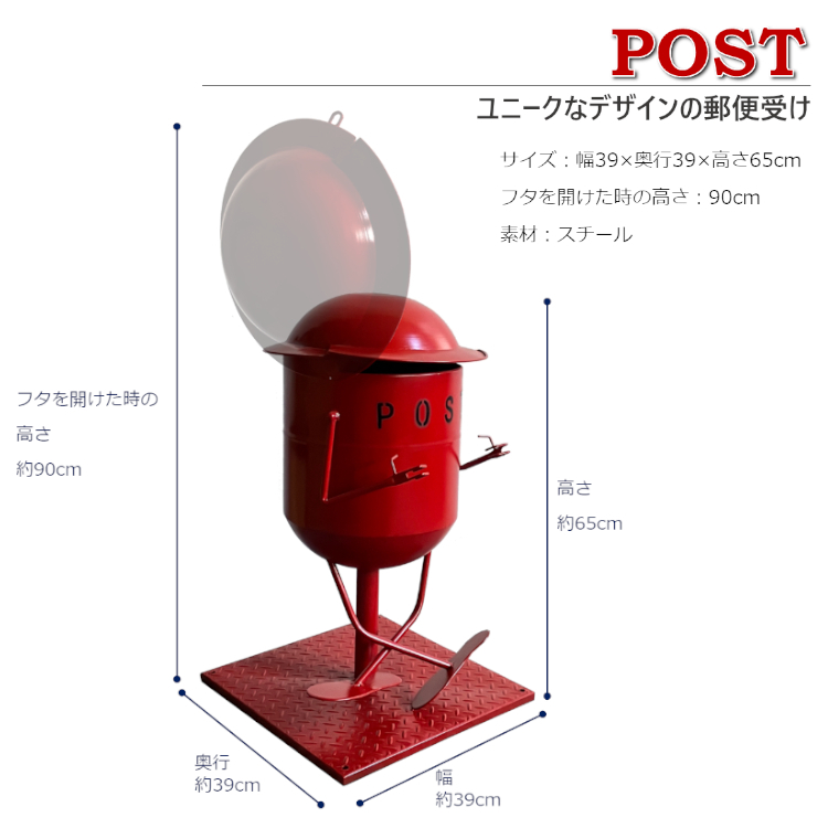 玄関先で目を引く赤色の郵便受け。大きな口から郵便を受け取り、大容量の本体で収納します。フタががばっと大きく開いて、中身の出し入れもスムーズ。楽しくおしゃれな玄関を演出します。