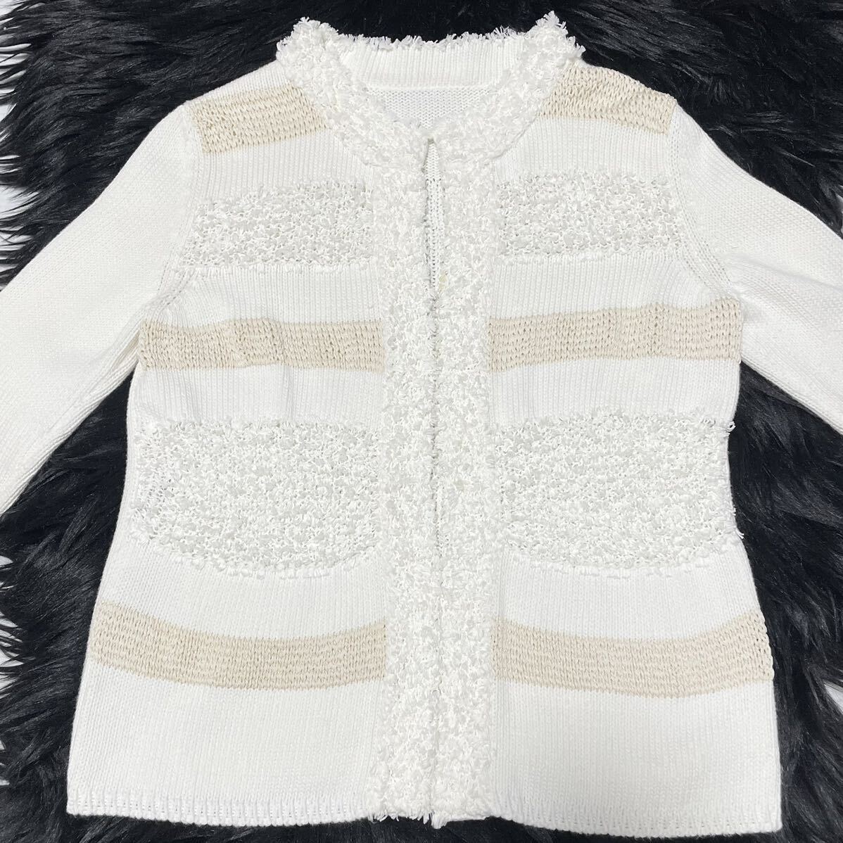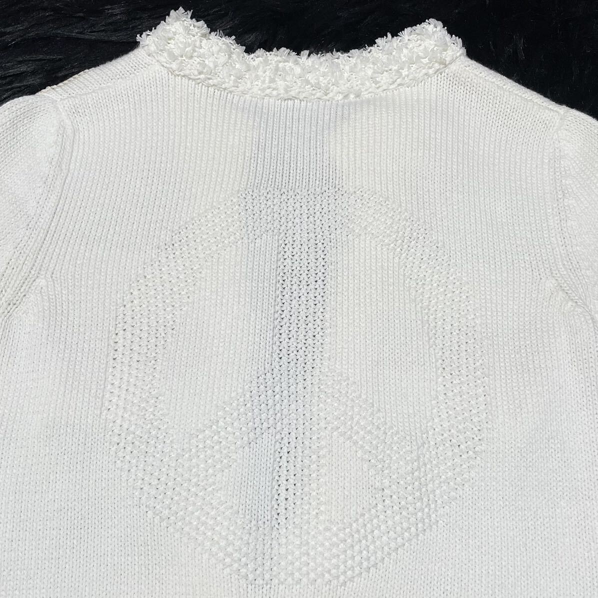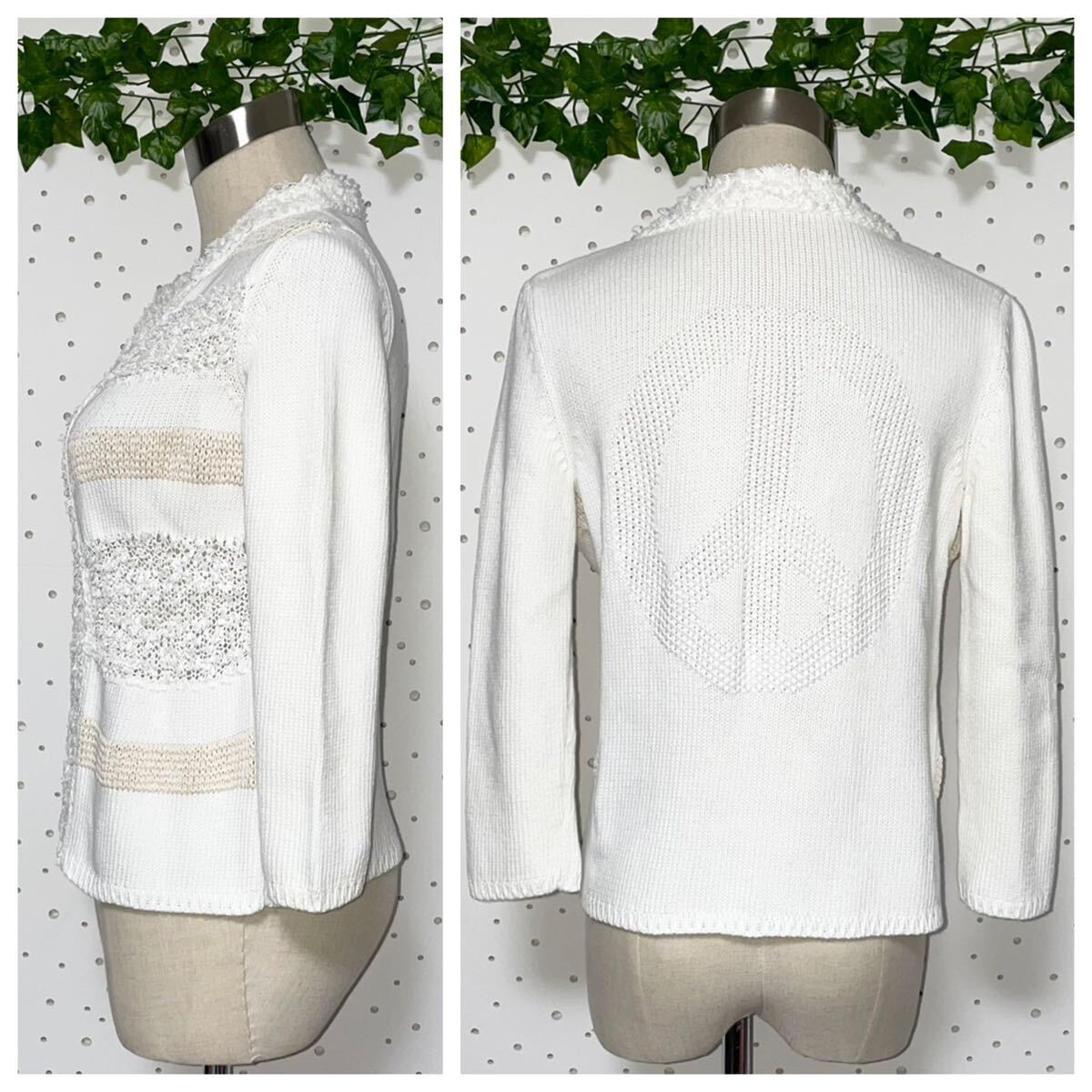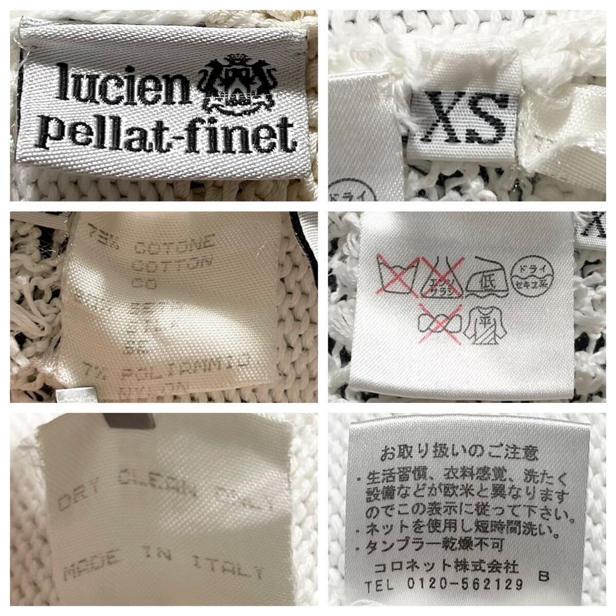 | 本物 ルシアンペラフィネ 背面ピースマーク ボーダー 切替 七分袖 ニット カーディガン ジャケット XS オフホワイト lucien pellat-finet | |||