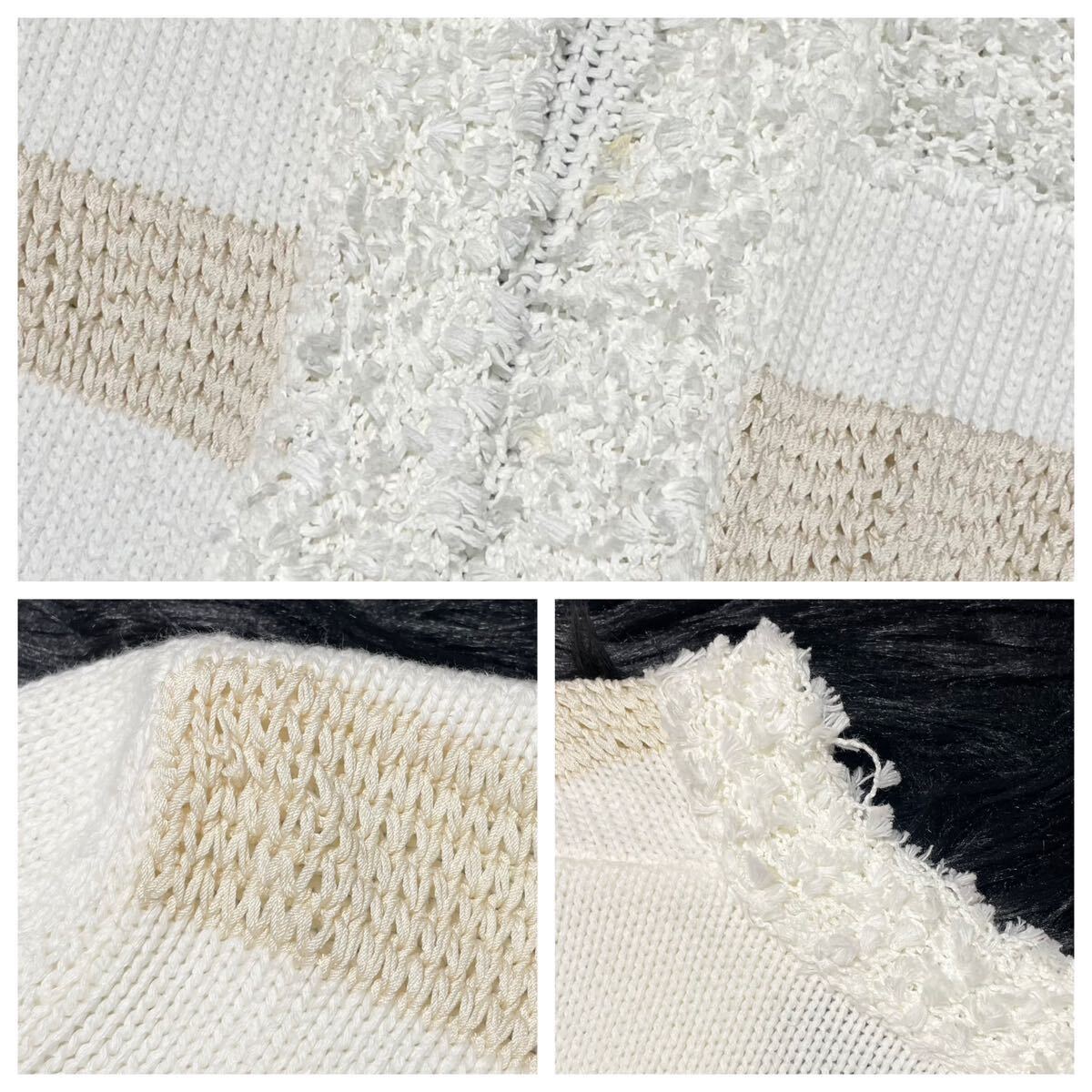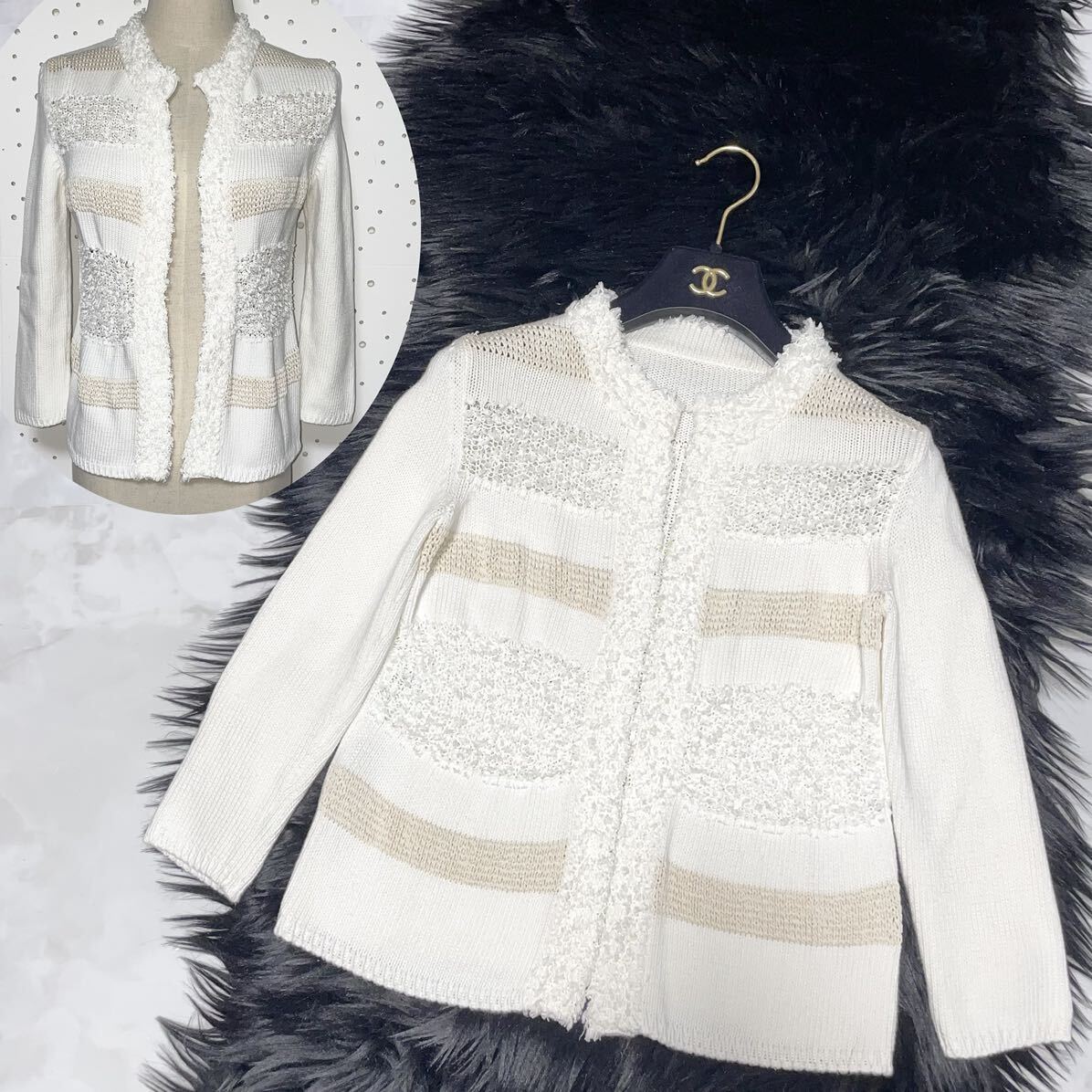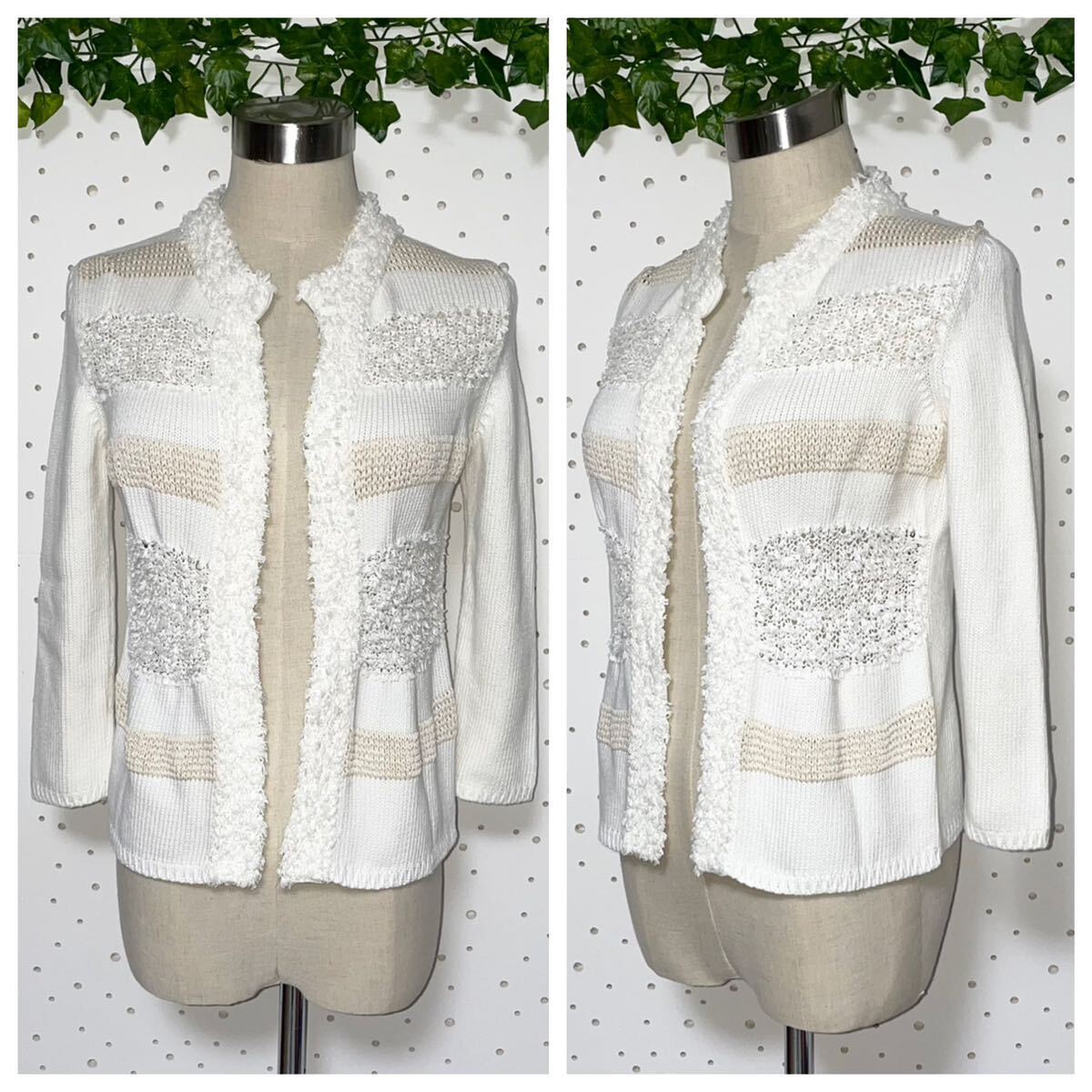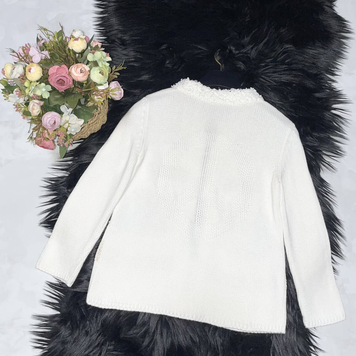 | 本物 ルシアンペラフィネ 背面ピースマーク ボーダー 切替 七分袖 ニット カーディガン ジャケット XS オフホワイト lucien pellat-finet | |||