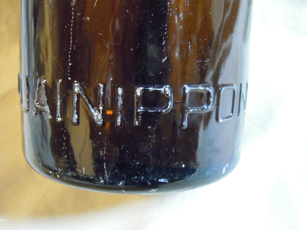 大日本ビールのビン。大日本ビールは1949年に解散していますので今から75年以上前の品です。小傷や擦れがありますが目立つ割れ欠けはありません。