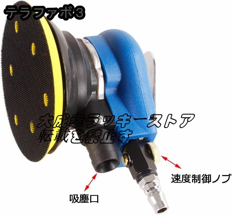 エアサンダー 空気圧 バフ盤 ポリッシャー カーワックス機 研磨 洗車 多機能 除塵チューブ付き 75mm 100mm 125mm (125mm吸塵チューブ付き)