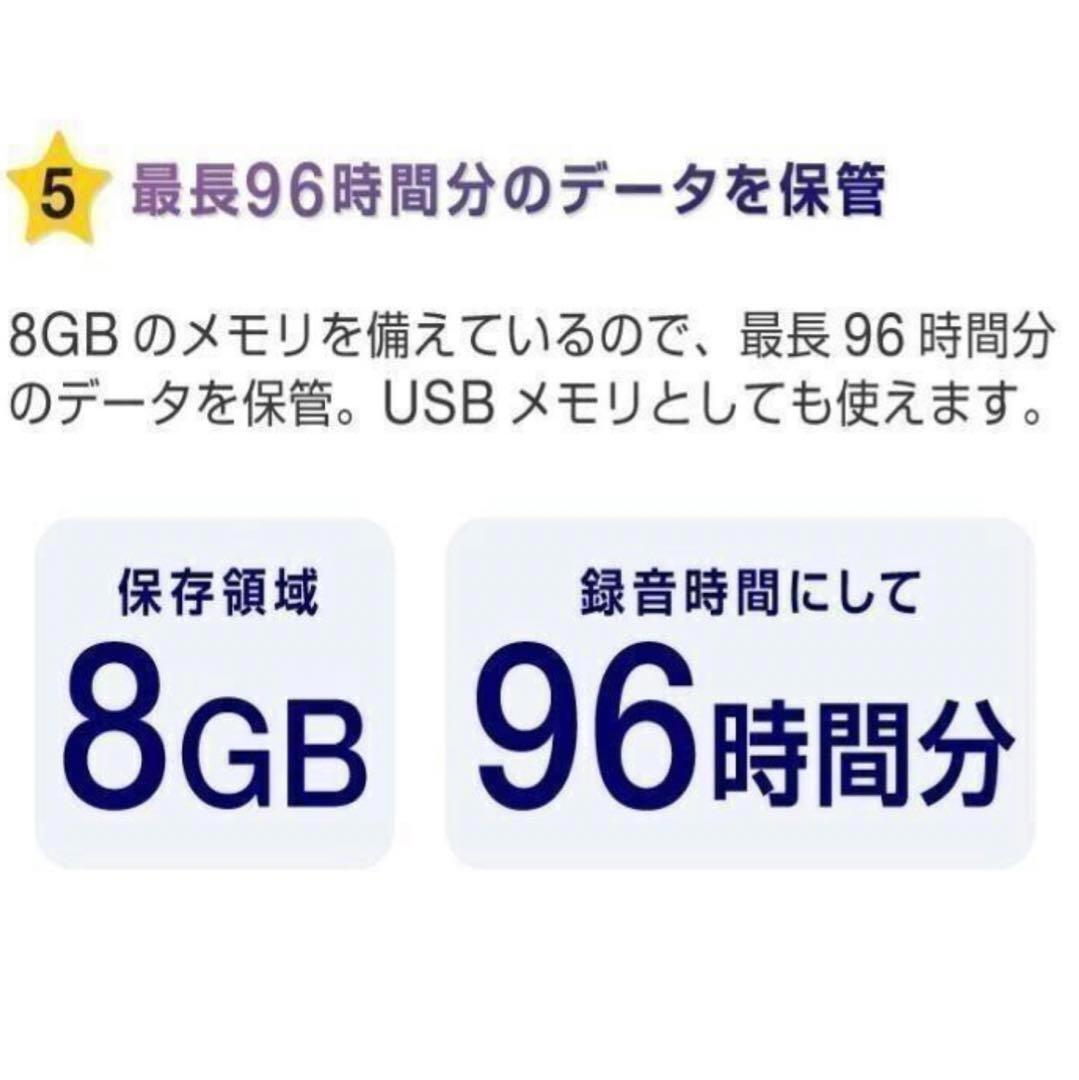 8GBの大容量メモリ搭載で最大96時間の録音保存が可能となりました。