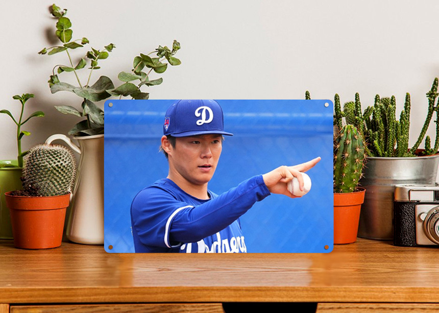 雑貨【 山本由伸 】 MLB ロサンゼルス・ドジャース プロ野球選手 写真 メタル ポスター ブリキ 看板 サビ風なし -16